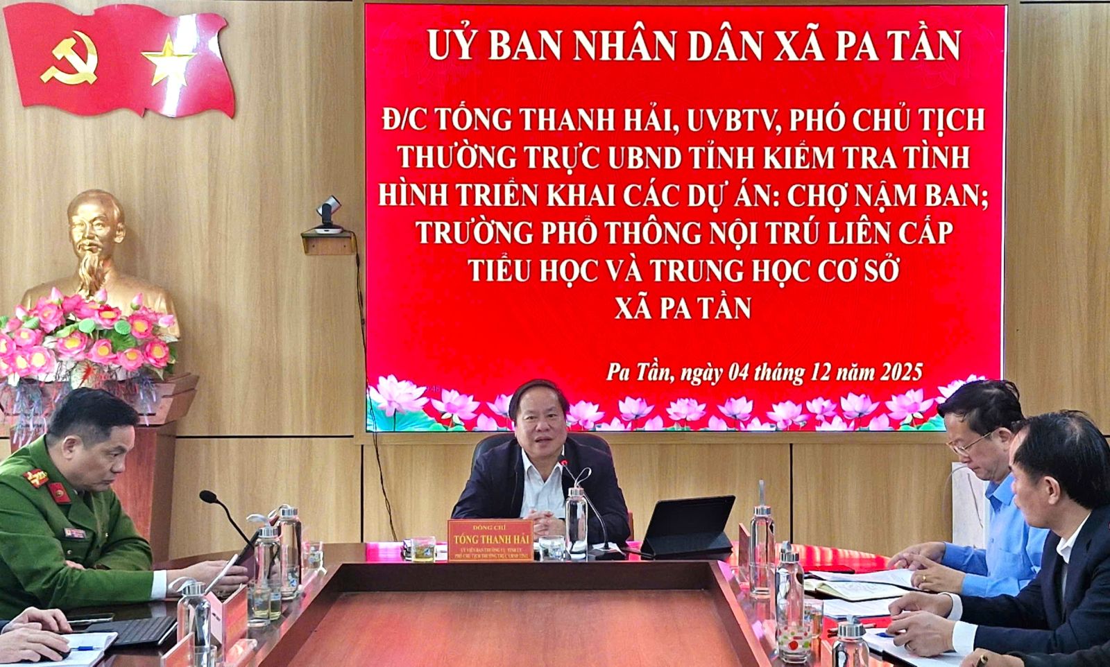 Sáng nay (4/12), Đoàn công tác của UBND tỉnh do đồng chí Tống Thanh Hải - Phó Chủ tịch Thường trực UBND tỉnh đã đi kiểm tra tình hình triển khai các dự án: Trường Phổ thông Nội trú liên cấp Tiểu học và Trung học cơ sở xã Pa Tần và Chợ Nậm Ban.
