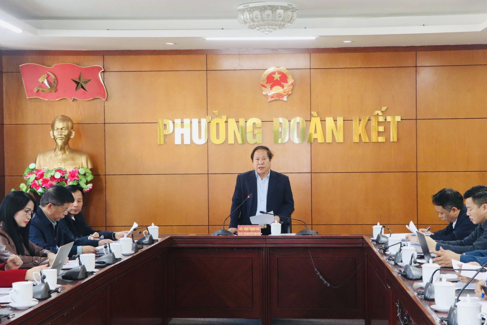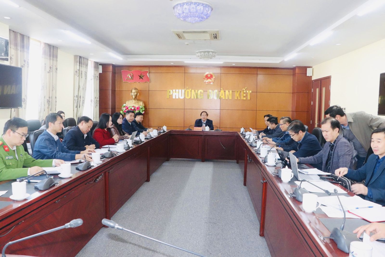 Tiếp và làm việc với Đoàn kiểm tra về phía phường Đoàn Kết có đồng chí Nguyễn Đình Tiến - Phó Bí thư Thường trực Đảng ủy phụ trách Đảng bộ Phường; đồng chí Hoàng Đại Thắng - Chủ tịch UBND phường, Chủ tịch UBBC phường cùng các thành viên UBBC phường.