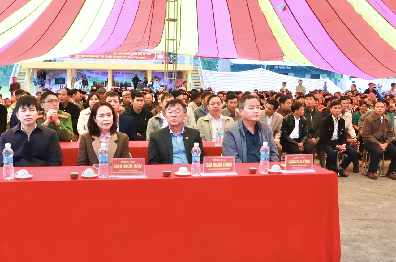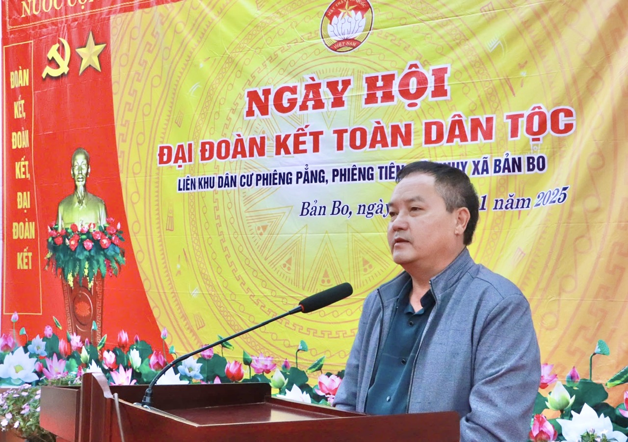 Phát biểu động viên bà con Nhân dân tại Ngày hội, đồng chí Giàng A Tính - Phó Chủ tịch UBND tỉnh đã ghi nhận sự nỗ lực, đoàn kết của Nhân dân liên bản Phiêng Pẳng - Phiêng Tiên - Nà Khuy, xã Bản Bo trong phát triển kinh tế, xây dựng đời sống văn hóa ở khu dân cư.
