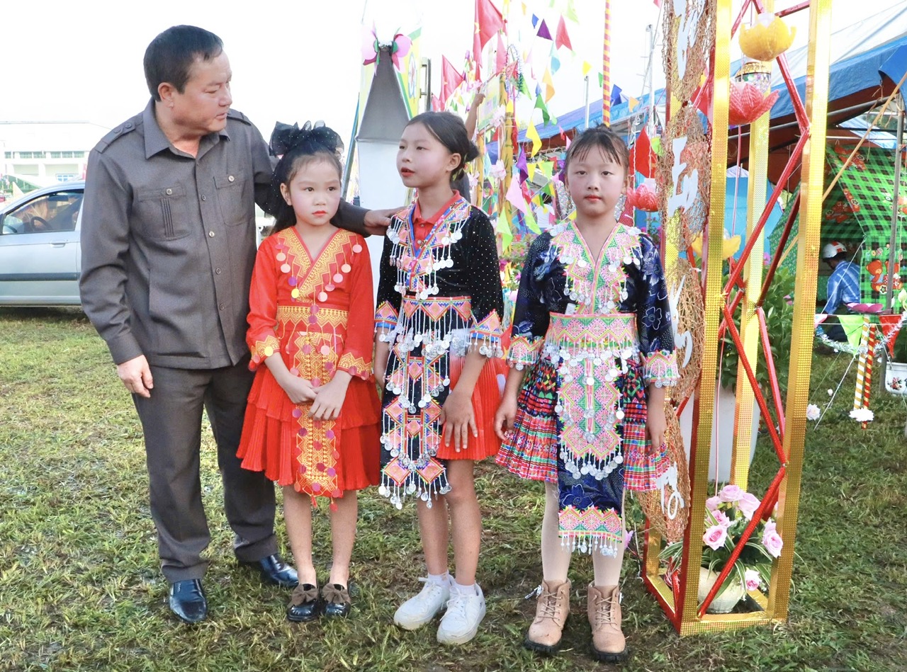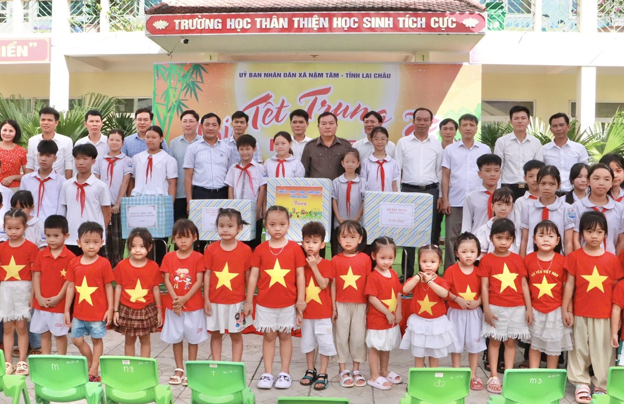Tại xã Nậm Tăm, đồng chí Phó Chủ tịch UBND tỉnh Giàng A Tính cũng đã ân cần hỏi thăm, động viên các cháu thiếu niên, nhi đồng đón Tết Trung thu vui vẻ, ấm áp và tặng quà cho các cháu học sinh trên địa bàn xã.