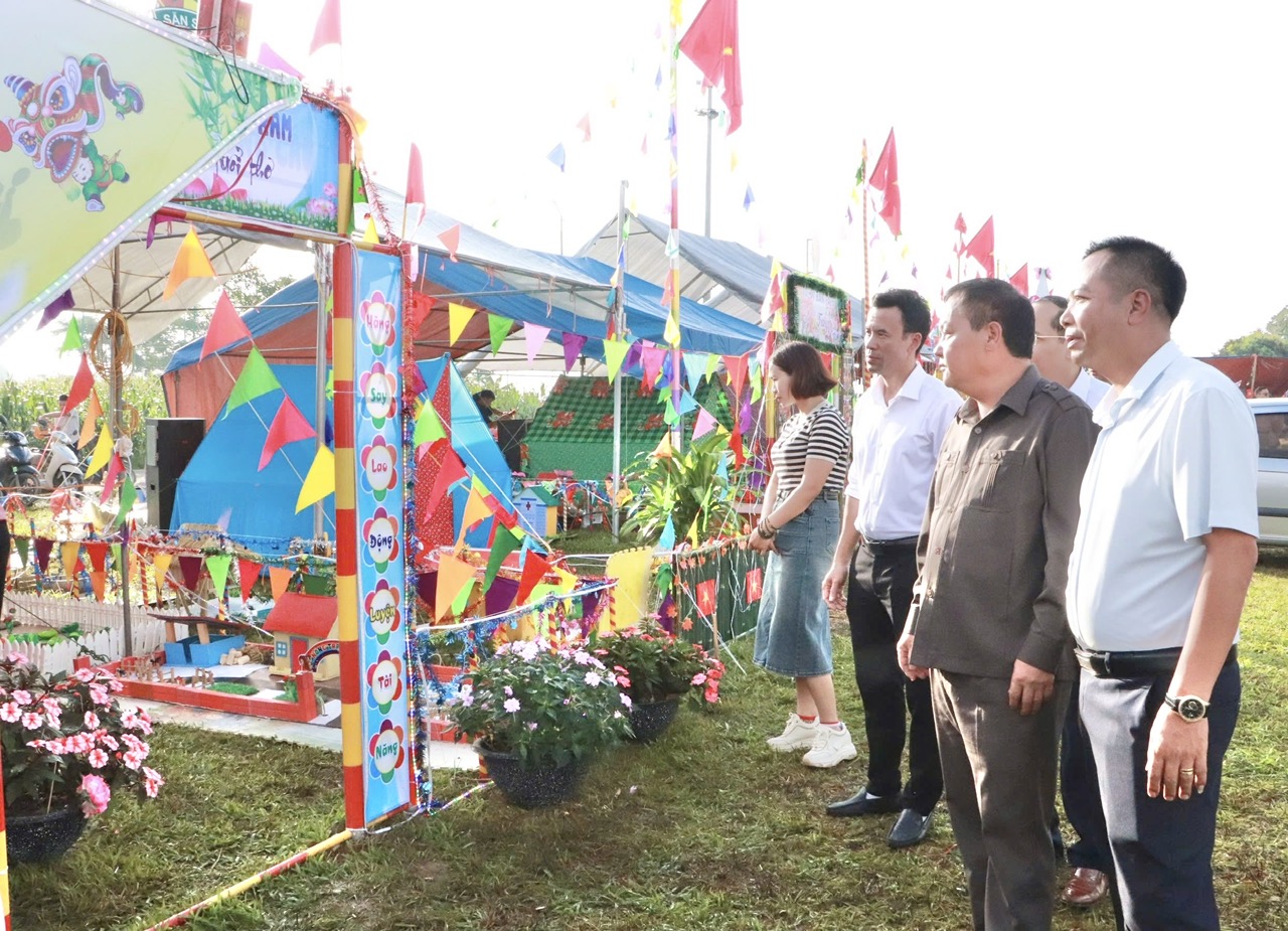 Nhân dịp này, đồng chí Giàng A Tính cùng các thành viên Đoàn công tác, các đồng chí lãnh đạo UBND xã Bình Lư đi tham quan các gian trại của các chi đội, liên chi đội tổ chức tại sân Vận động xã Bình Lư.