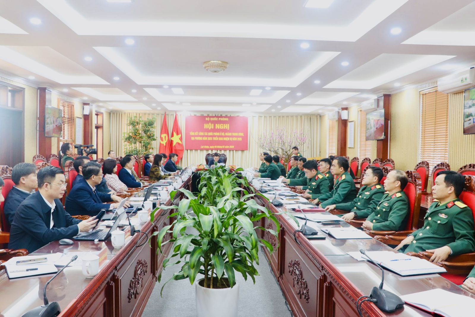 Tại Hội nghị, đồng chí Giàng A Tính - Phó Chủ tịch UBND tỉnh đã phát biểu tham luận, trong đó nhấn mạnh: Năm 2025, trong bối cảnh tỉnh biên giới còn nhiều khó khăn, UBND tỉnh Lai Châu đã lãnh đạo, chỉ đạo toàn diện và đạt được nhiều kết quả nổi bật trong nhiệm vụ quốc phòng, quân sự địa phương. Tỉnh đã quán triệt nghiêm túc các nghị quyết của Trung ương, gắn chặt việc xây dựng khu vực phòng thủ với phát triển kinh tế - xã hội, đặc biệt là tại các địa bàn trọng điểm biên giới. Tỉnh Lai Châu đã ổn định 03 Ban Chỉ huy phòng thủ khu vực và hoàn thành sắp xếp Ban Chỉ huy quân sự cấp xã theo mô hình mới, điều động 126 cán bộ về cơ sở. Công tác tuyển chọn và gọi công dân nhập ngũ đạt 100% chỉ tiêu với 806 công dân; đồng thời tổ chức giáo dục quốc phòng, an ninh cho 1.788 lượt cán bộ, đảng viên, góp phần nâng cao nhận thức chính trị cho toàn xã hội. Tỉnh đã tổ chức thành công diễn tập điểm Ban Chỉ huy Bộ đội Biên phòng, được Bộ Quốc phòng đánh giá hoàn thành xuất sắc nhiệm vụ. Sự phối hợp giữa ba lực lượng Quân sự - Công an - Biên phòng theo Nghị định 03/2019/NĐ-CP được duy trì hiệu quả, giúp nắm chắc tình hình, không để xảy ra “điểm nóng”, bảo đảm an ninh tại 11 xã và 108 thôn, bản biên giới.