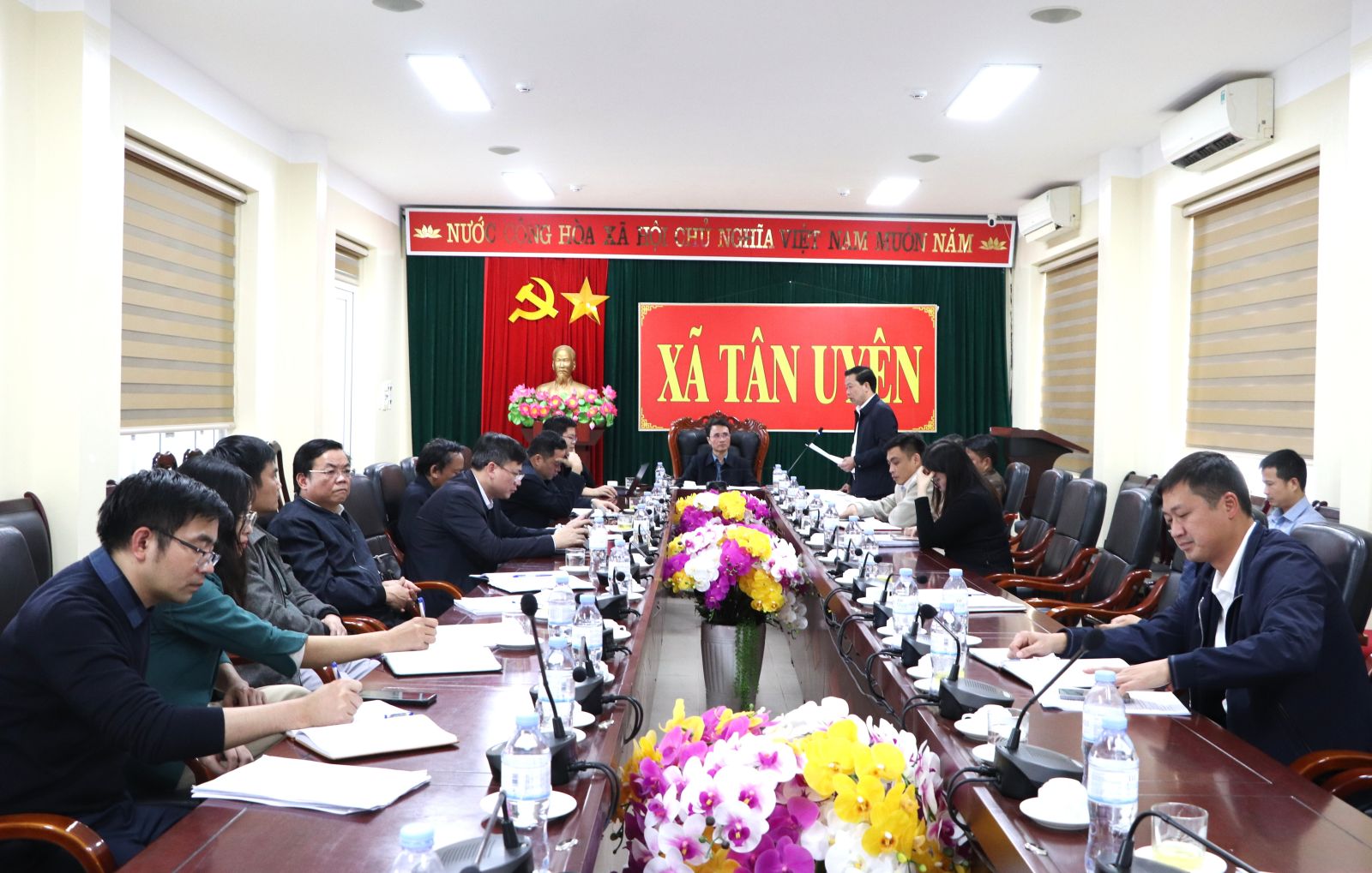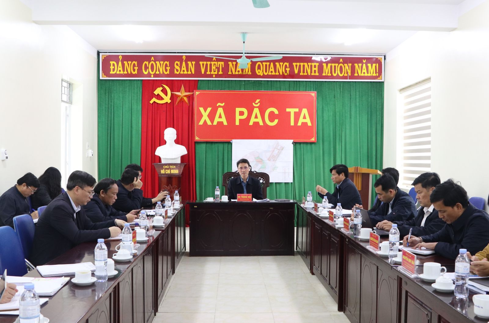 Sau khi đi thực địa, Đoàn công tác đã làm việc với các xã về định hướng quy hoạch chung. Đại diện lãnh đạo các xã, đơn vị tư vấn đã báo cáo công tác chuẩn bị lập quy hoạch.