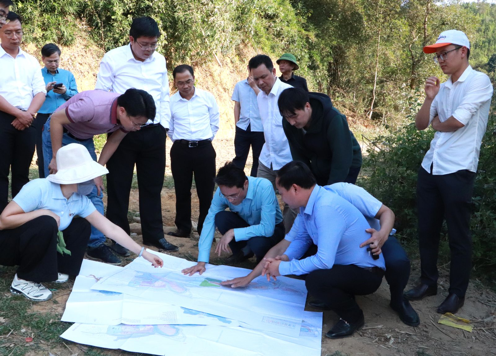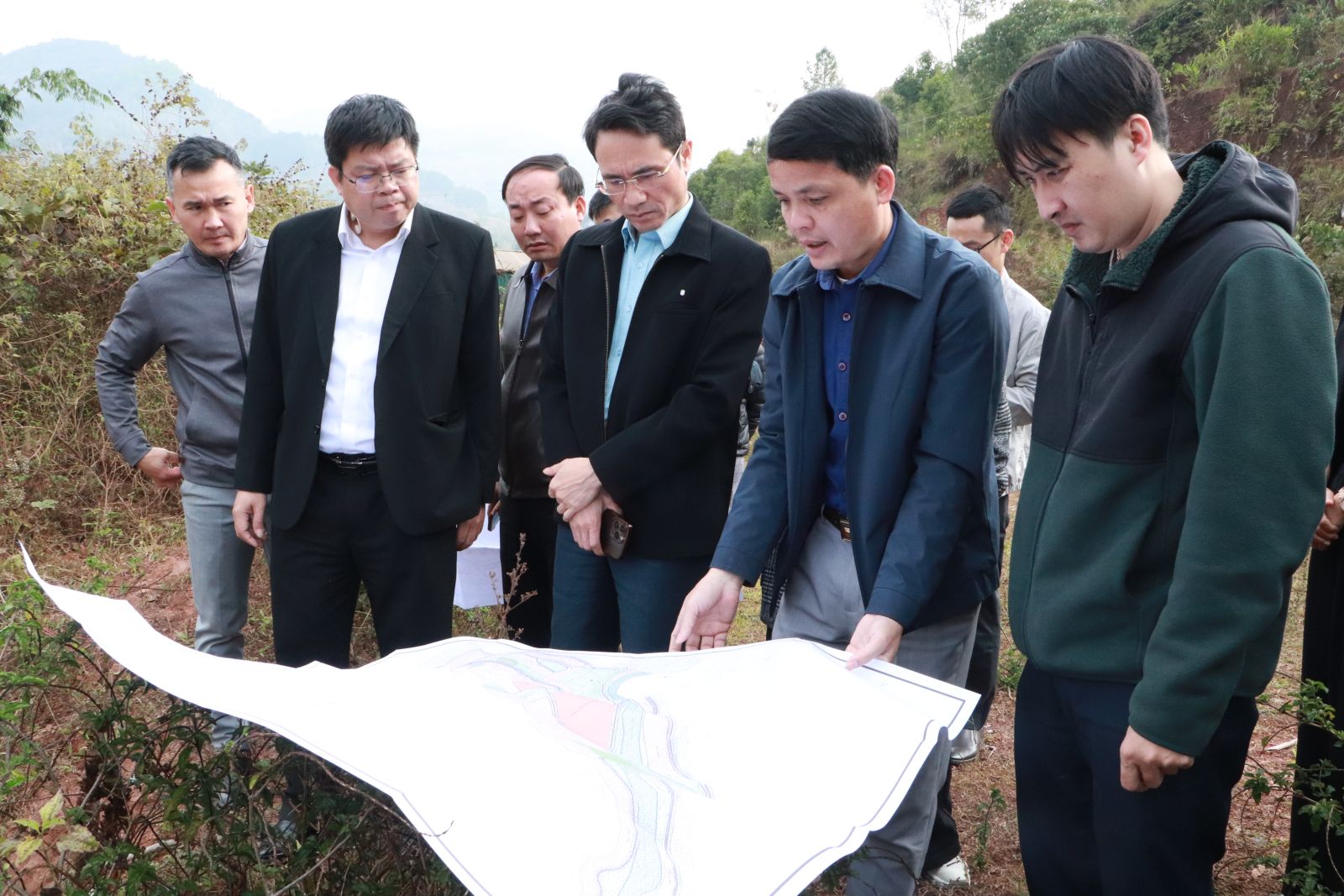Trước khi tiến hành buổi làm việc, đồng chí Hà Trọng Hải - Phó Chủ tịch UBND tỉnh và Đoàn công tác đã đi kiểm tra thực địa tại một số khu vực định hướng quy hoạch trọng điểm của xã Nậm Sỏ, Mường Kim, Khoen On.