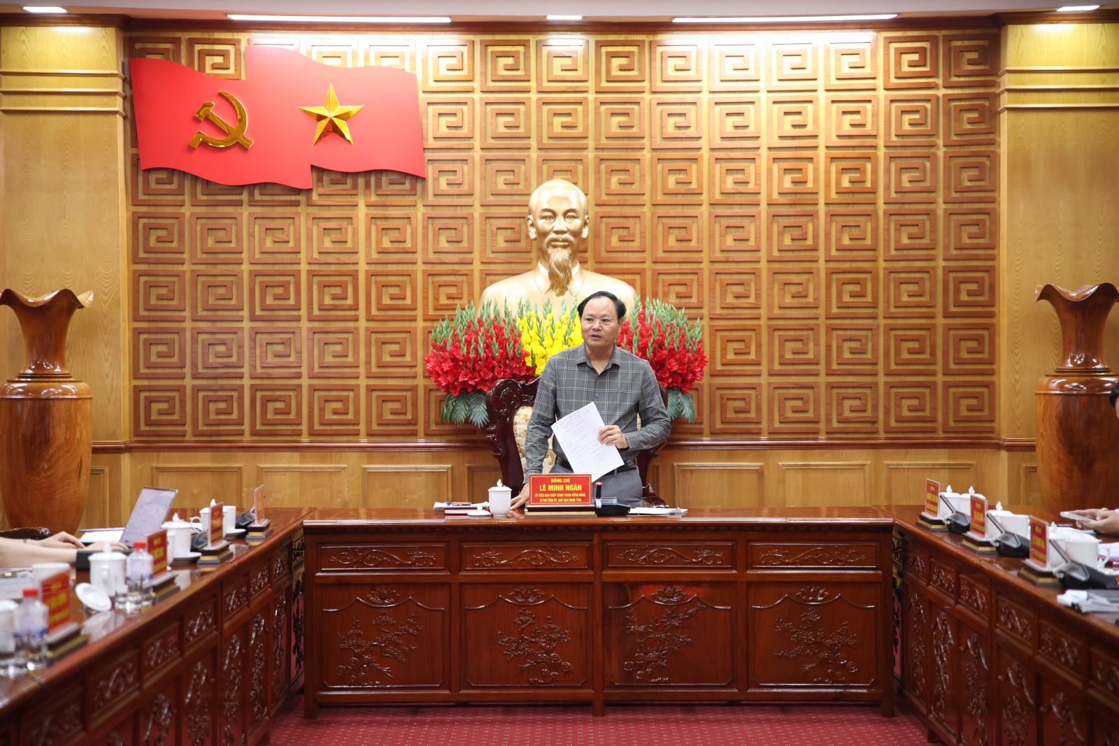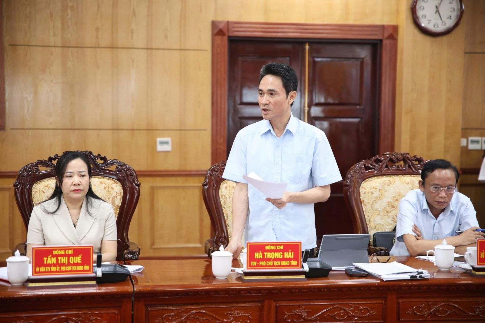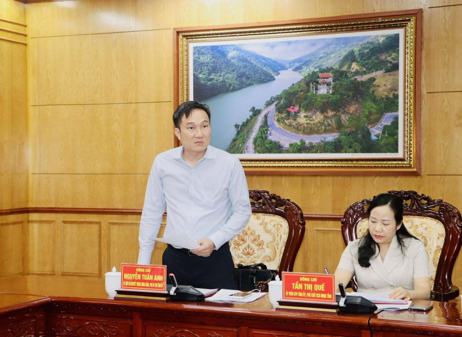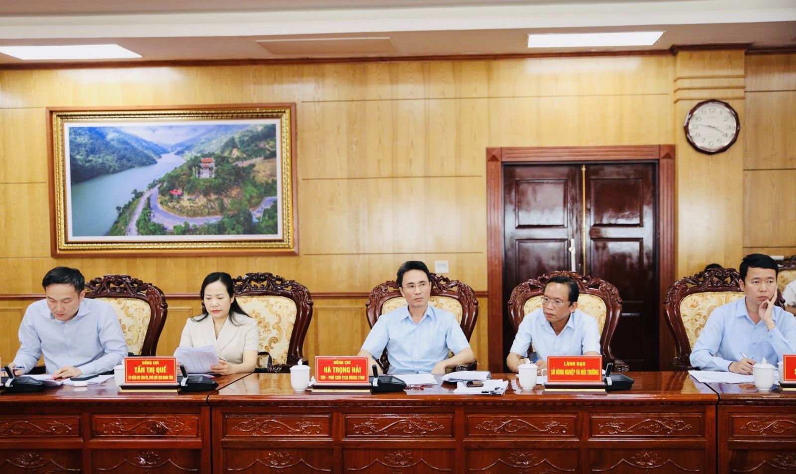 Đồng chí Bí thư Tỉnh ủy đề nghị tập trung chỉ đạo công tác phát triển nông thôn, đẩy mạnh đầu tư Nhà nước để phát triển nông thôn, tạo động lực để phát triển. Tăng cường quản lý đất đai; tập trung phát triển quỹ đất tạo nguồn thu cho ngân sách; đẩy nhanh tiến độ công tác đo đạc, lập bản đồ địa chính và xây dựng cơ sở dữ liệu đất đai theo đúng chỉ đạo của Thủ tướng Chính phủ; tăng cường quản lý, bảo vệ khoáng sản; xây dựng kịch bản phòng, chống thiên tai để có giải pháp phòng, chống hiệu quả; gia cố, củng cố hồ đập; nghiên cứu, tiên lượng, dự báo nguy cơ sạt lở ảnh hưởng đến tính mạng cho Nhân dân để có phương án phòng, chống và bảo vệ…