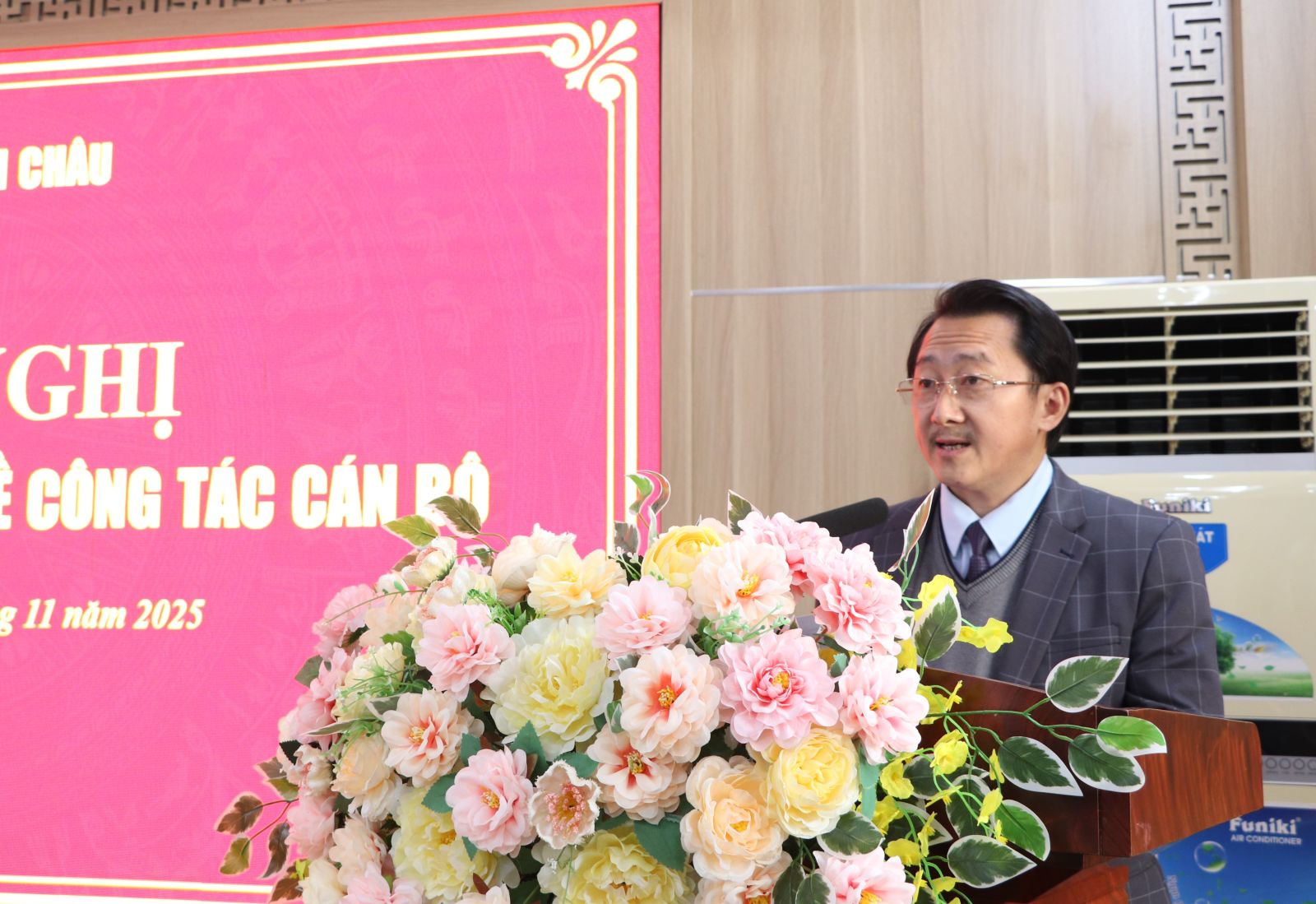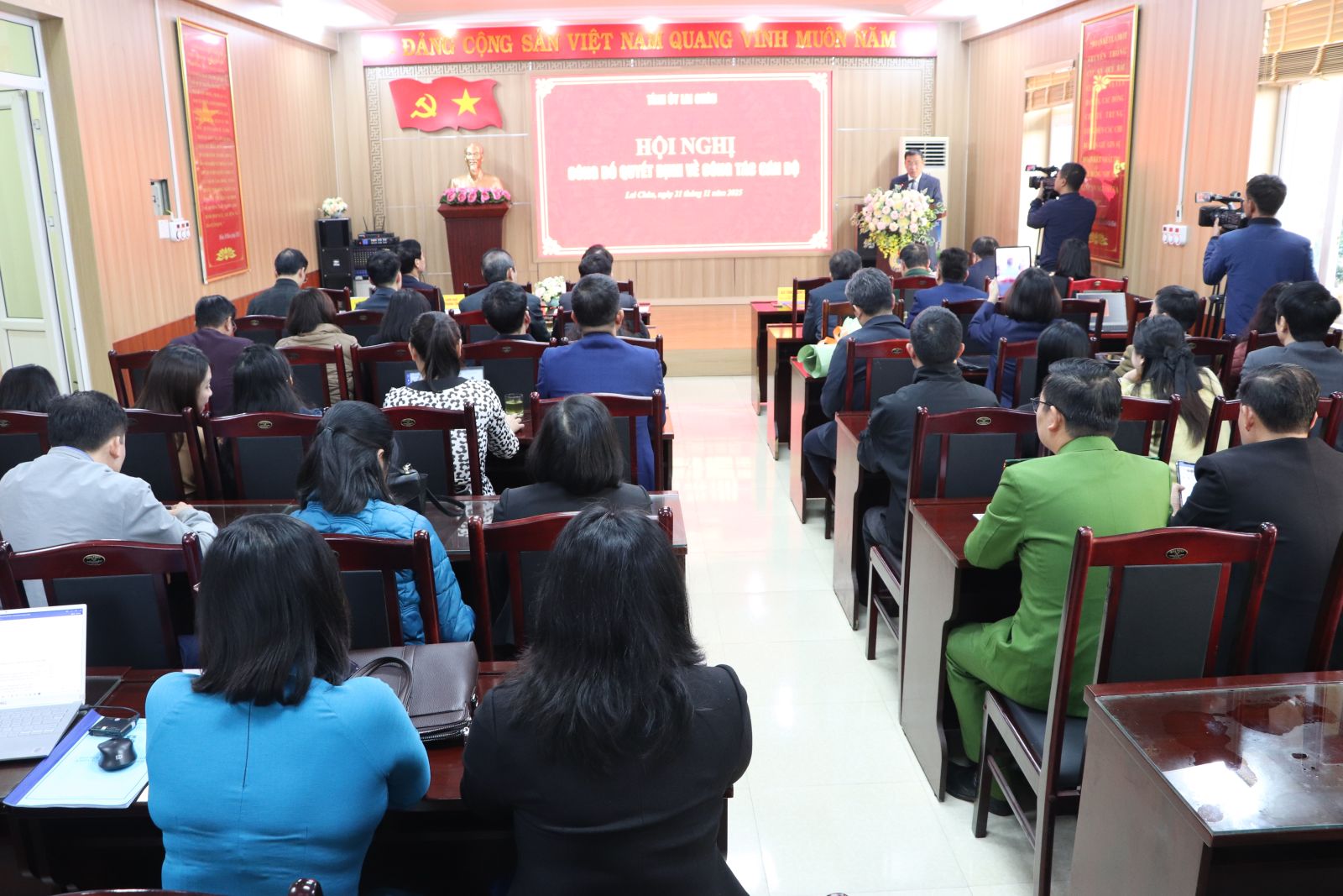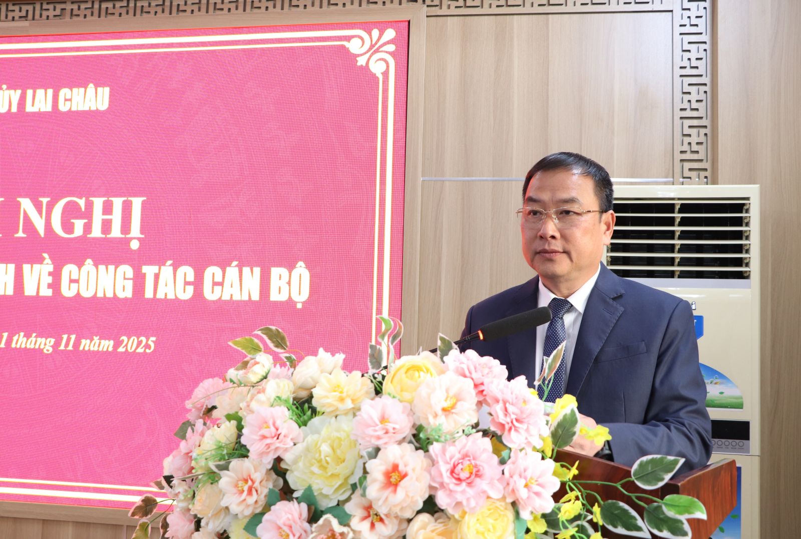Tại Hội nghị, đồng chí Mạc Quang Mạnh - Phó Trưởng Ban Tổ chức Tỉnh ủy đã công bố Quyết định số 55-QĐ/TU ngày 14/11/2025 của Ban Thường vụ Tỉnh ủy Lai Châu về việc điều động cán bộ.