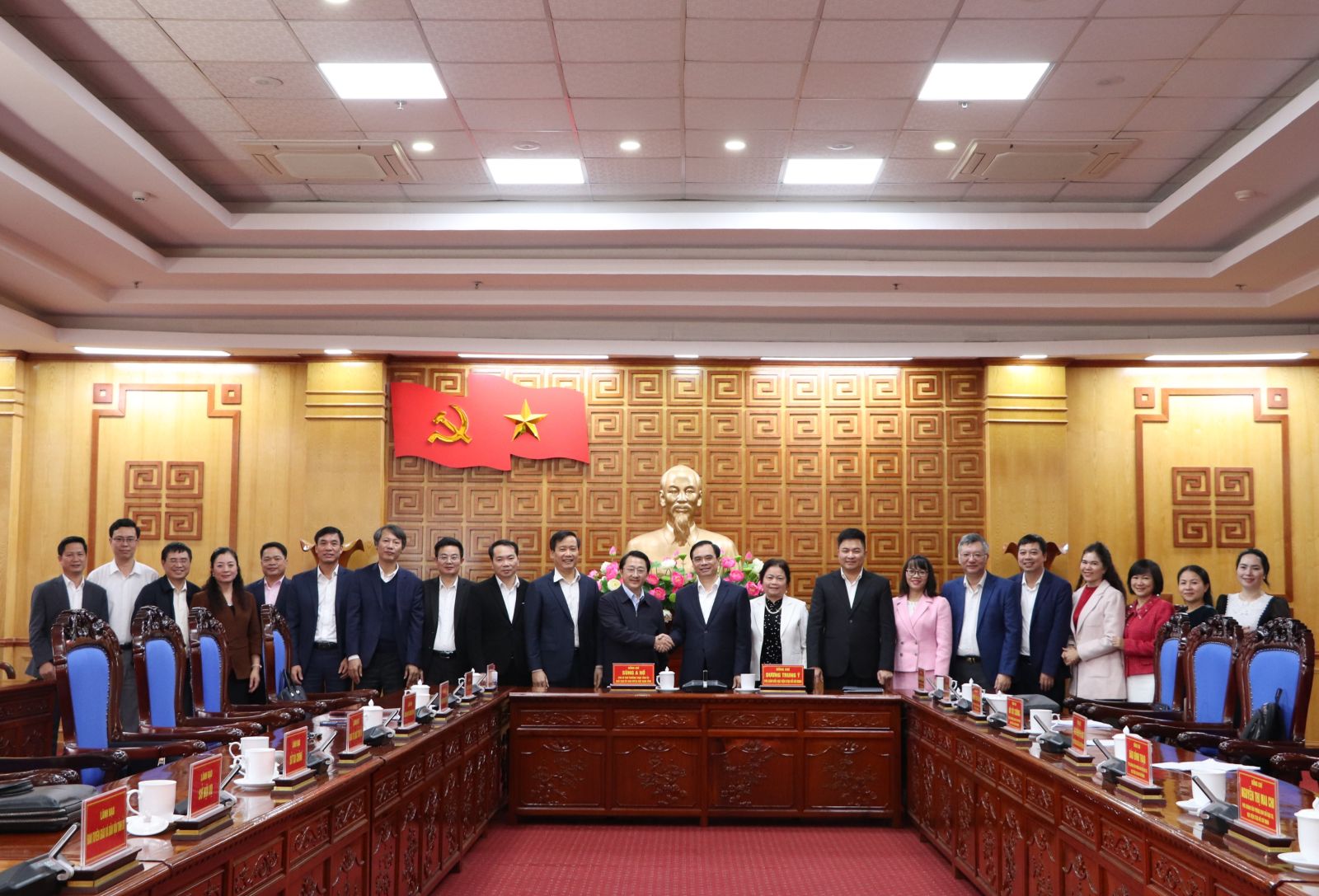 Đồng chí Sùng A Hồ - Phó Bí thư Thường trực Tỉnh ủy, Chủ tịch Ủy ban MTTQ Việt Nam tỉnh; PGS, TS Dương Trung Ý - Phó Giám đốc Học viện chủ trì buổi làm việc.