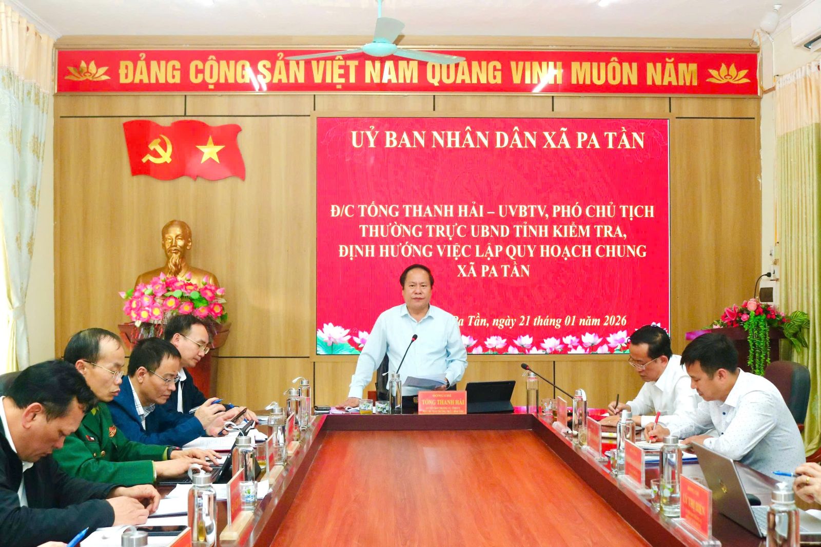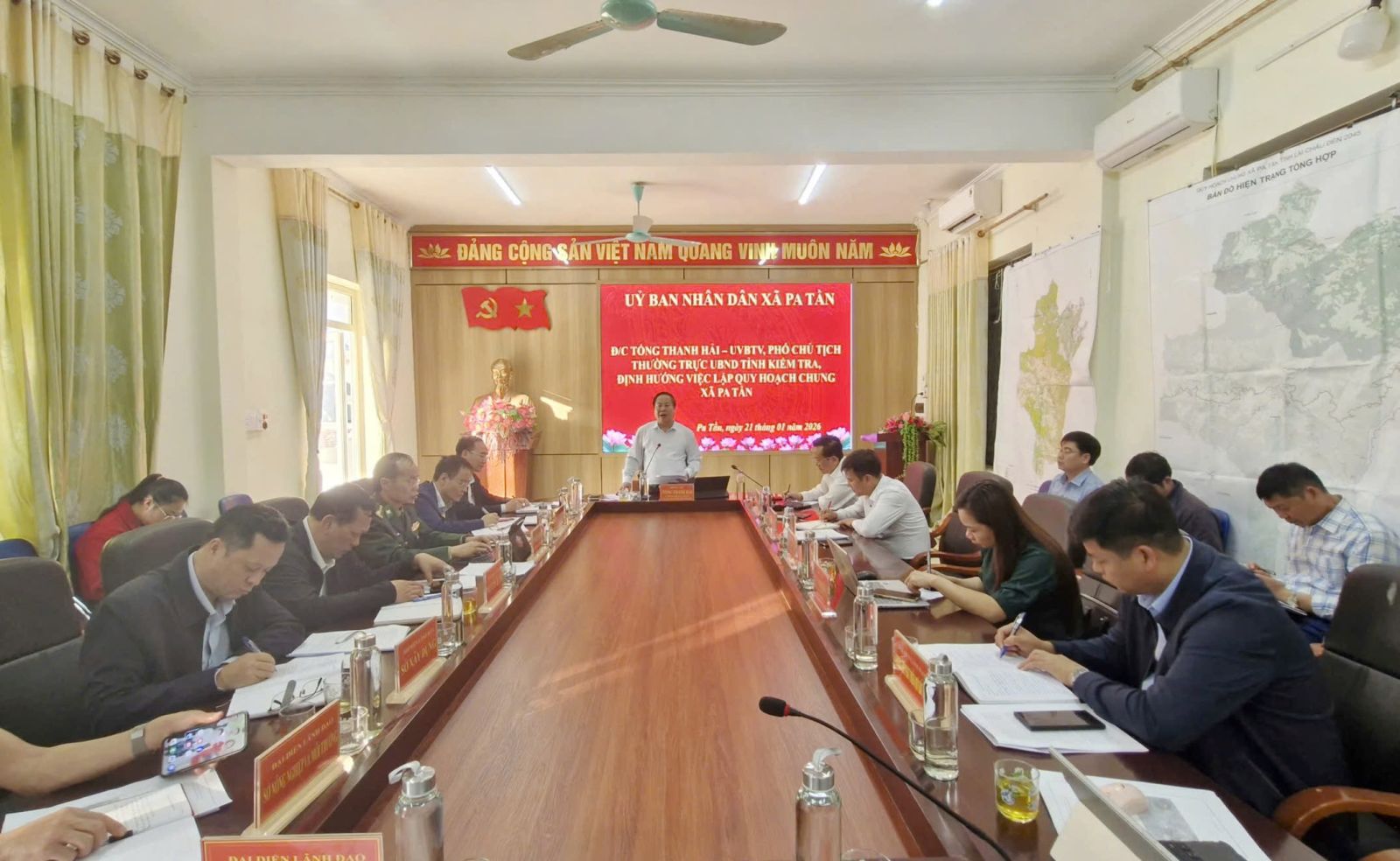 Chiều nay (21/1), Tổ công tác số 1 do đồng chí Tống Thanh Hải - Ủy viên Ban Thường vụ Tỉnh ủy, Phó Chủ tịch Thường trực UBND tỉnh làm Tổ trưởng đã có buổi kiểm tra thực địa và làm việc với xã Pa Tần về công tác lập quy hoạch chung xã Pa Tần trong tình hình mới.