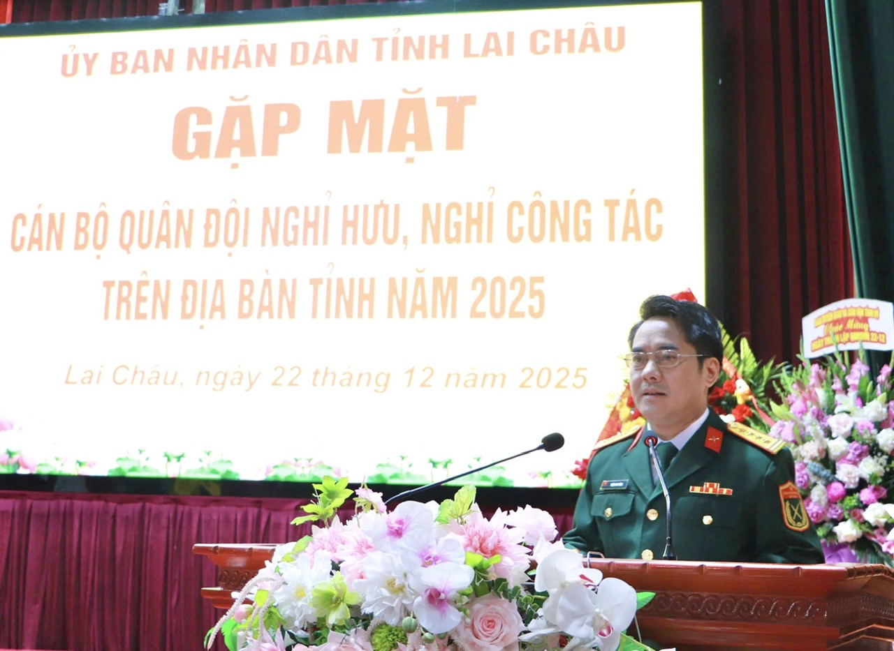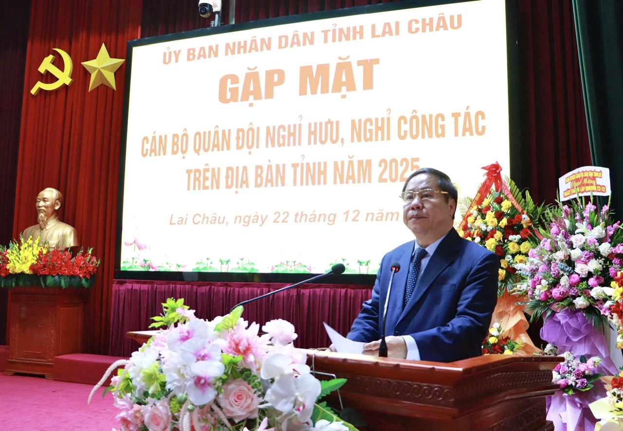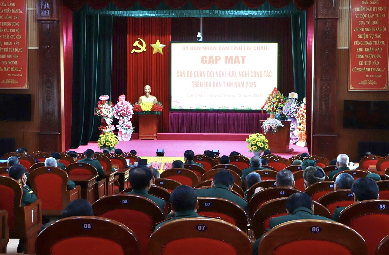 Sáng nay (22/12), UBND tỉnh Lai Châu tổ chức Gặp mặt cán bộ quân đội nghỉ hưu, nghỉ công tác nhân dịp kỷ niệm 81 năm Ngày thành lập Quân đội nhân dân Việt Nam (22/12/1944 - 22/12/2025) và 36 năm Ngày hội Quốc phòng toàn dân. Đây là sự kiện có ý nghĩa chính trị - xã hội sâu sắc, thể hiện truyền thống, đạo lý tốt đẹp “Uống nước nhớ nguồn”, “Đền ơn đáp nghĩa” của Đảng bộ, chính quyền và Nhân dân các dân tộc tỉnh Lai Châu đối với lực lượng vũ trang và các thế hệ cán bộ quân đội.