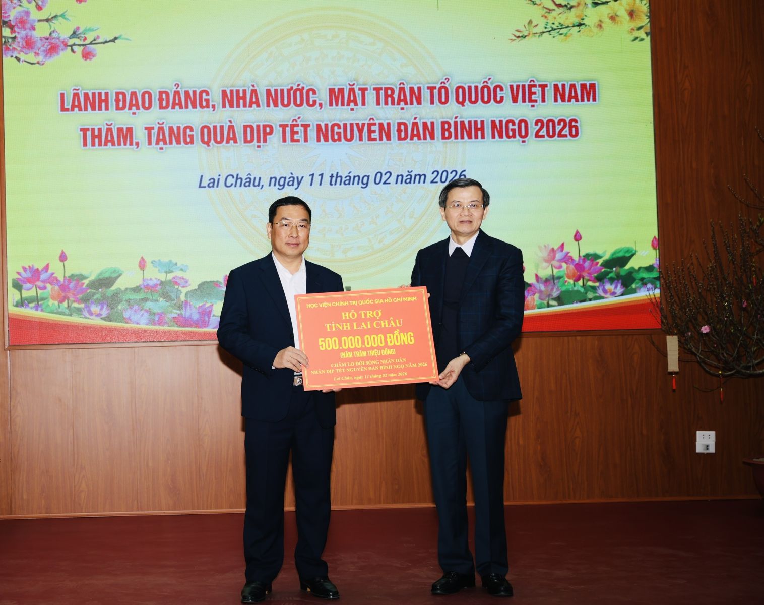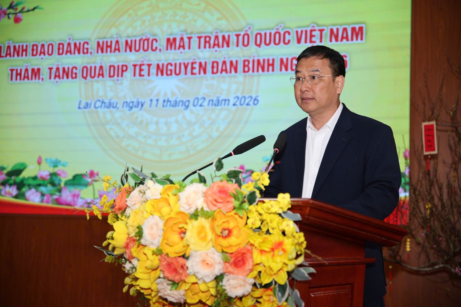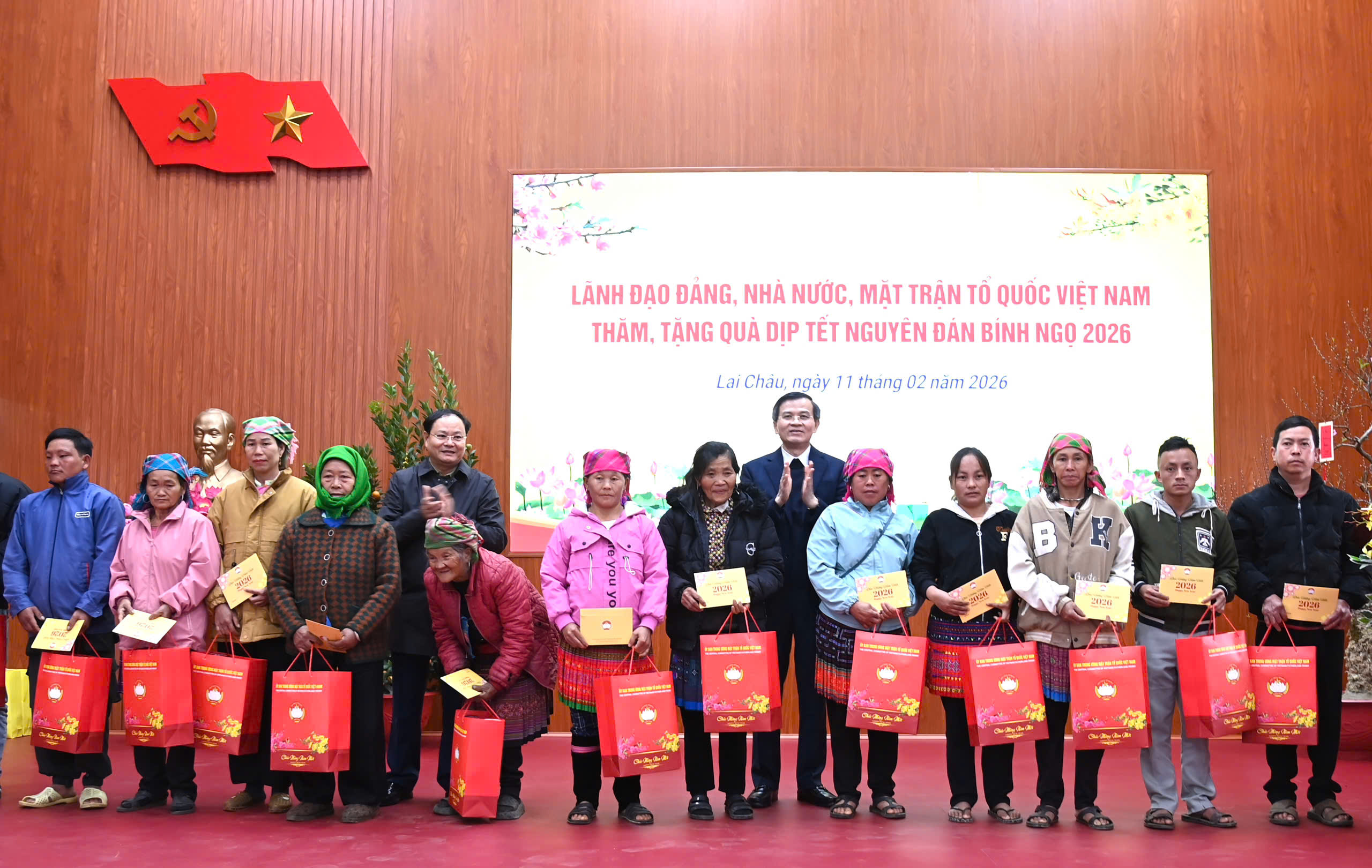 Sáng nay (11/02), trong không khí chuẩn bị đón Tết Nguyên đán Bính Ngọ 2026, Đoàn công tác của lãnh đạo Đảng, Nhà nước do Phó Giáo sư, Tiến sĩ Đoàn Minh Huấn - Ủy viên Bộ Chính trị, Giám đốc Học viện Chính trị Quốc gia Hồ Chí Minh làm Trưởng đoàn đã đến thăm, chúc Tết cán bộ, chiến sĩ và tặng quà Tết cho hộ nghèo, hộ cận nghèo và người lao động có hoàn cảnh khó khăn tại tỉnh Lai Châu.