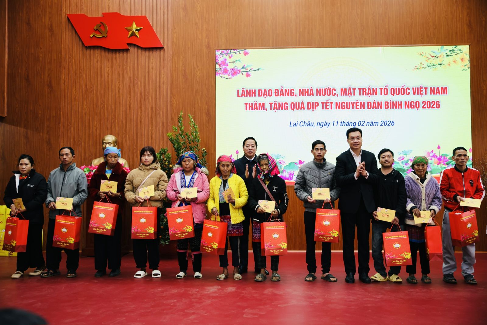 Tại các nơi đến đồng chí tặng quà của lãnh đạo Đảng, Nhà nước; quà của Học viện chính trị Quốc gia Hồ Chí Minh; lãnh đạo tỉnh Lai Châu trao quà cho các đơn vị.