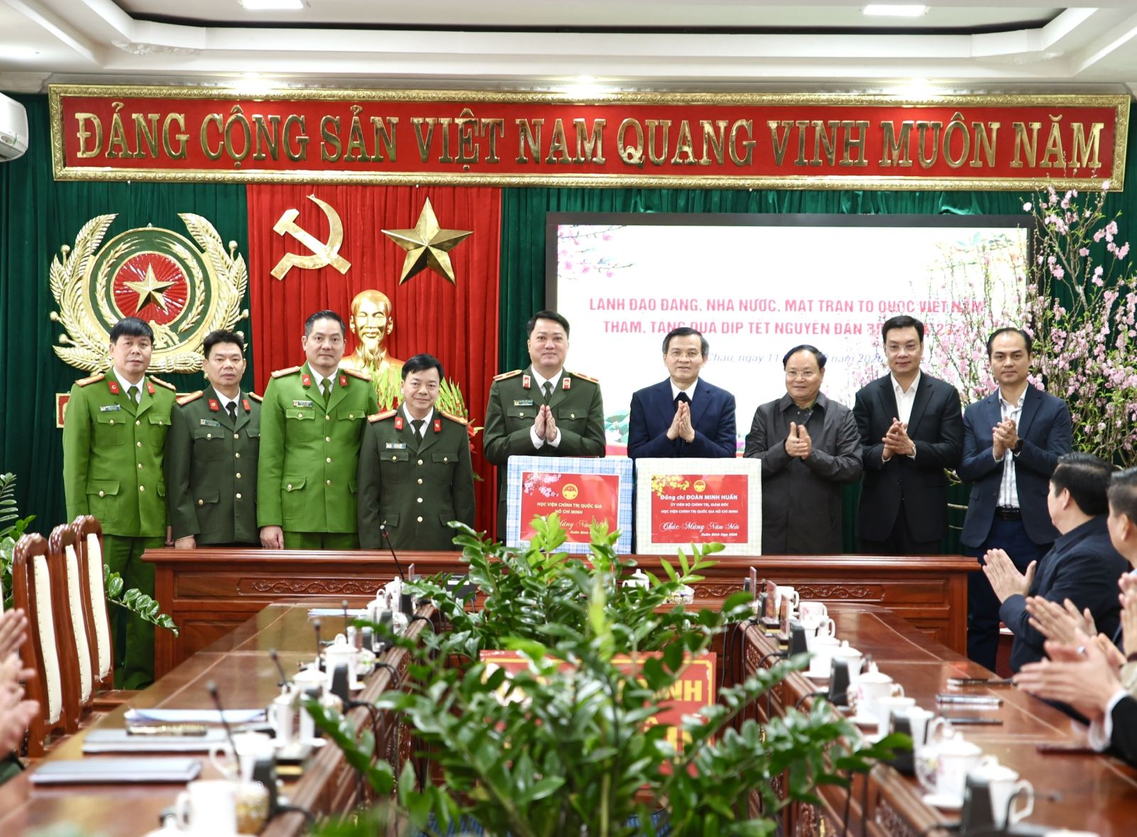 Trong buổi trưa cùng ngày, Đoàn công tác đã tới thăm và chúc Tết tại Công an tỉnh và Bộ Chỉ huy Quân sự tỉnh. Tại các điểm đến, lãnh đạo các đơn vị đã báo cáo về công tác trực Tết, đảm bảo an ninh trật tự và quân sự, quốc phòng địa phương để Nhân dân yên tâm vui xuân, đón Tết.