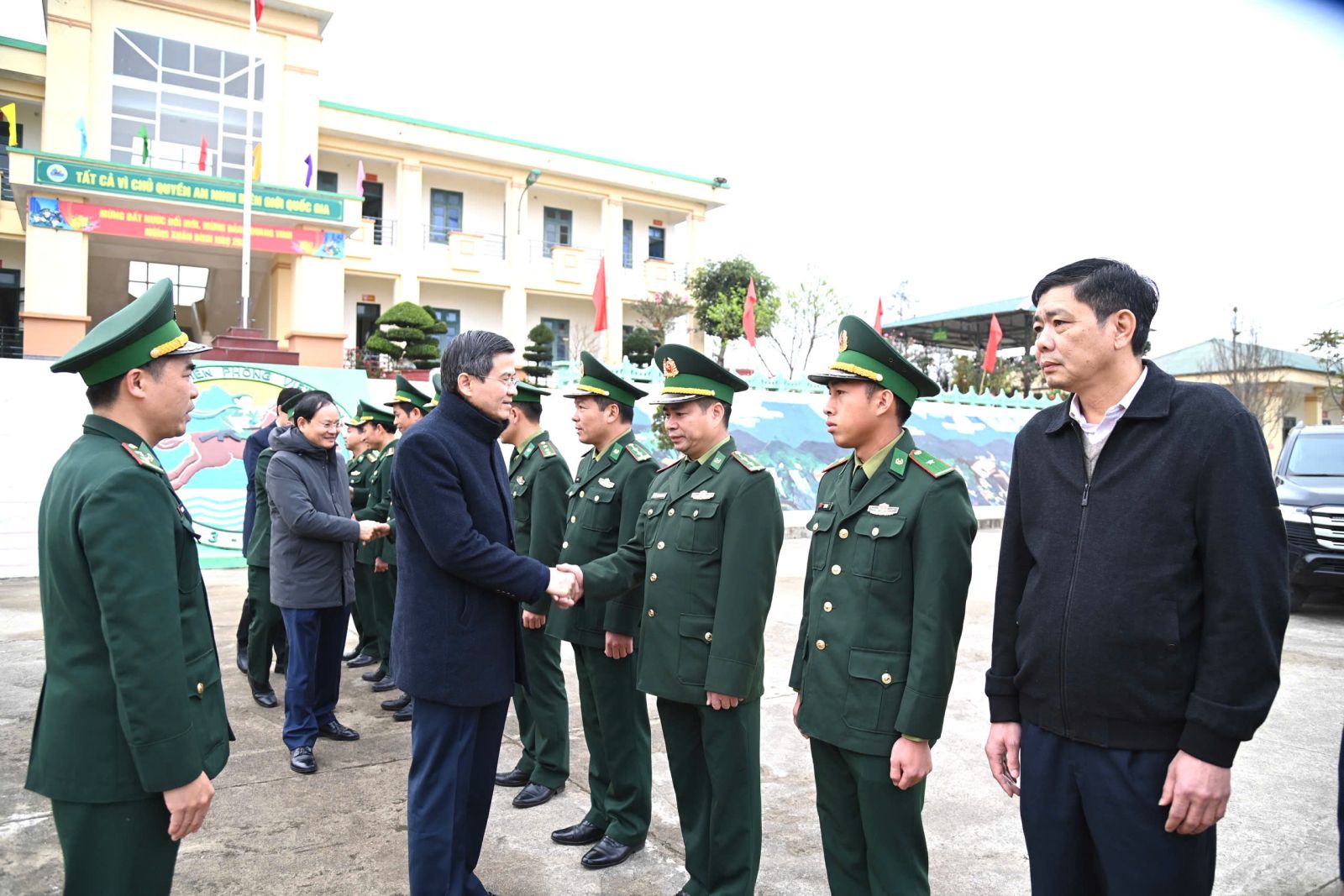 Mở đầu hành trình công tác, Đoàn đã đến thăm, chúc Tết cán bộ, chiến sĩ Đồn Biên phòng Sin Suối Hồ. Báo cáo với Đoàn, đồng chí Nguyễn Văn Thu - Đồn trưởng Đồn Biên phòng Sin Suối Hồ cho biết: Đồn được giao quản lý, bảo vệ 9,272km đường biên giới với 4 mốc quốc giới; phụ trách địa bàn 2 xã Sin Suối Hồ, Khổng Lào với trên 33 nghìn nhân khẩu thuộc 5 dân tộc sinh sống.