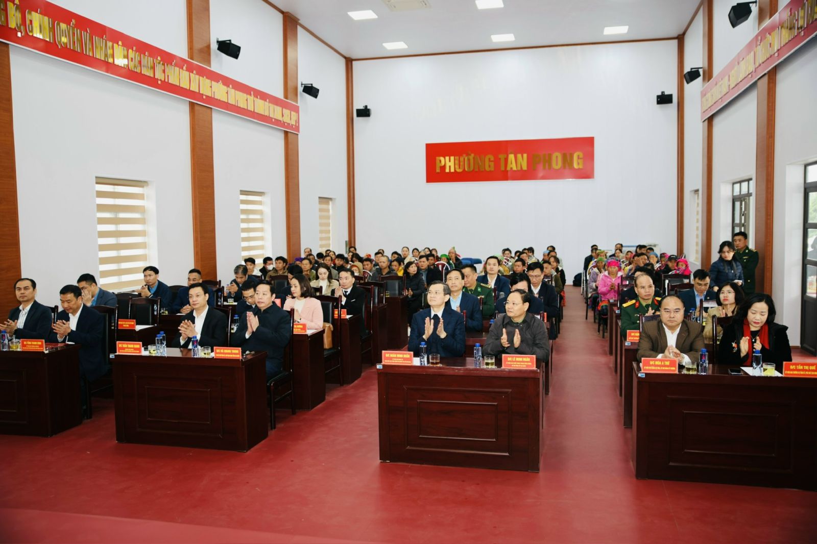 Tiếp đó, tại Hội trường UBND phường Tân Phong, Đoàn công tác đã tổ chức Chương trình thăm và tặng quà cho hộ nghèo, hộ cận nghèo và người lao động có hoàn cảnh khó khăn.