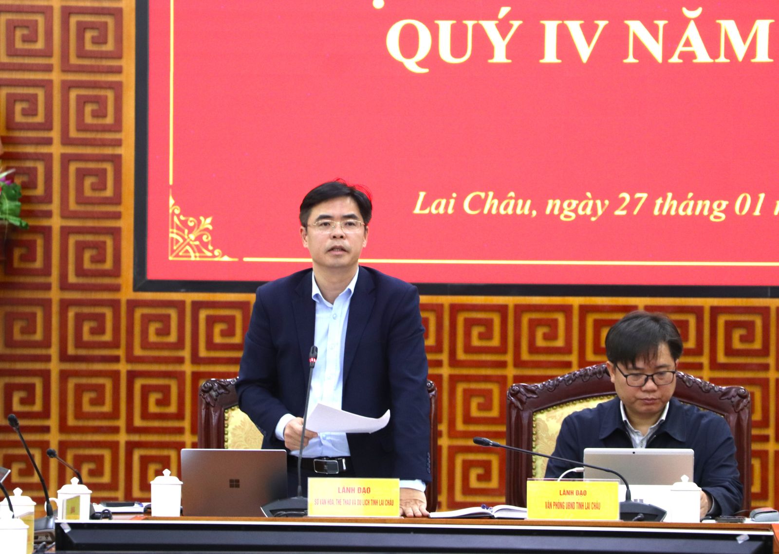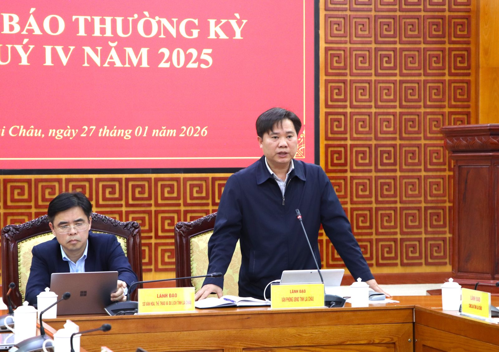 Chiều nay (27/1), UBND tỉnh Lai Châu tổ chức Họp báo cung cấp thông tin định kỳ cho báo chí trên địa bàn tỉnh quý IV năm 2025. Được sự ủy quyền, các đồng chí: Nguyễn Đình Tứ - Phó Chánh Văn phòng UBND tỉnh; Trần Quang Kháng - Phó Giám đốc Sở Văn hóa, Thể thao và Du lịch đồng chủ trì Họp báo.