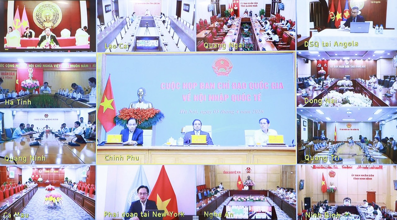Chiều nay (3/4), Ban Chỉ đạo Quốc gia về hội nhập quốc tế tổ chức cuộc họp quý I năm 2026. Cuộc họp được tổ chức theo hình thức trực tiếp kết hợp với trực tuyến kết nối từ điểm cầu Trung ương tới các điểm cầu 34 tỉnh, thành phố trong cả nước và điểm cầu đại sứ quán tại một số nước. Thủ tướng Chính phủ Phạm Minh Chính - Trưởng Ban Chỉ đạo Quốc gia về hội nhập quốc tế chủ trì cuộc họp.