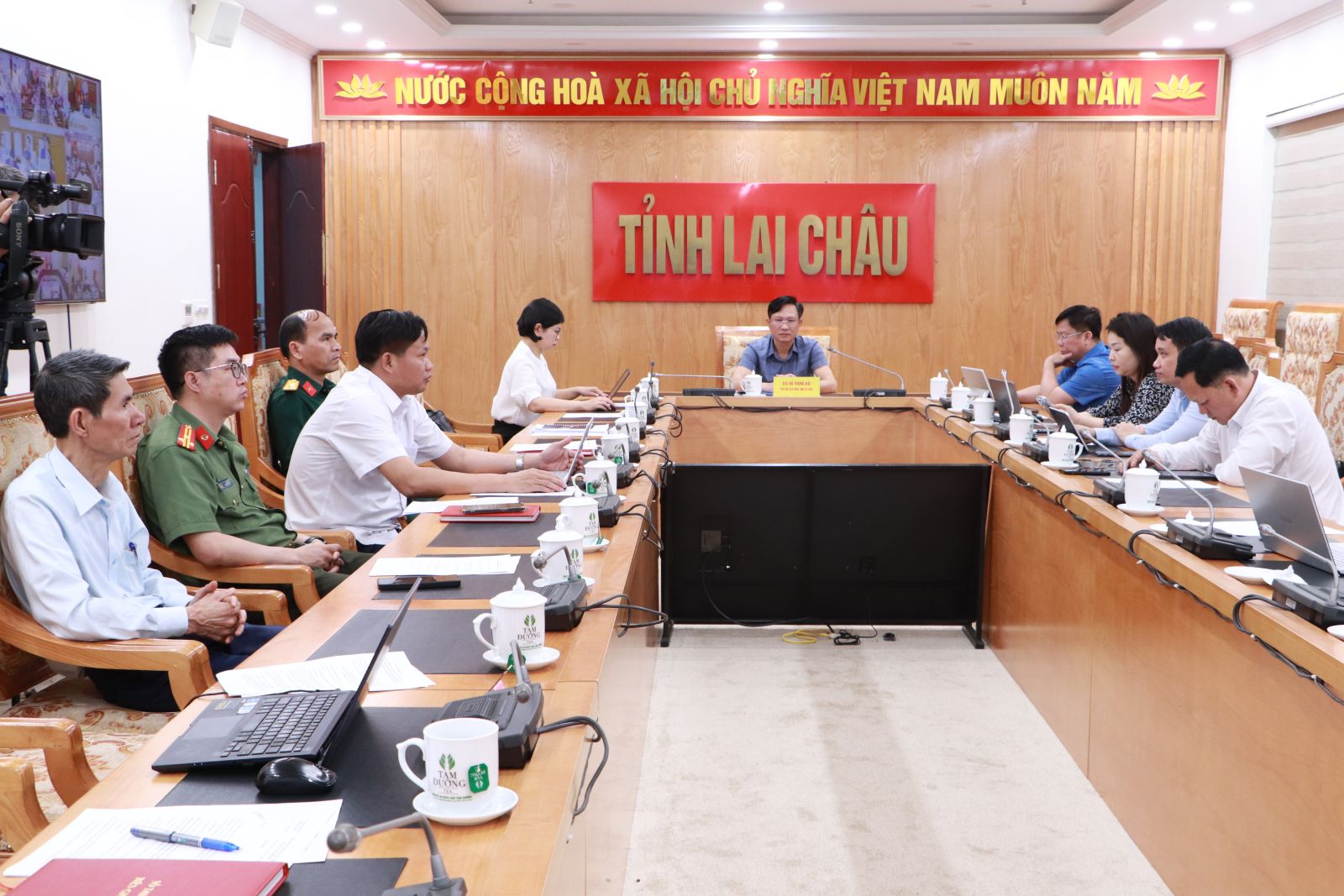 Dự cuộc họp tại điểm cầu tỉnh Lai Châu có đồng chí Kiều Hải Nam - Giám đốc Sở Ngoại vụ; đại diện lãnh đạo các sở, ngành: Công an tỉnh; Bộ Chỉ huy Quân sự tỉnh; Ngoại vụ; Tài chính; Công Thương; Nông nghiệp và Môi trường; Giáo dục và Đào tạo; Xây dựng; Văn hóa, Thể thao và Du lịch; Y tế; Ban Quản lý khu kinh tế tỉnh; Văn phòng UBND tỉnh…