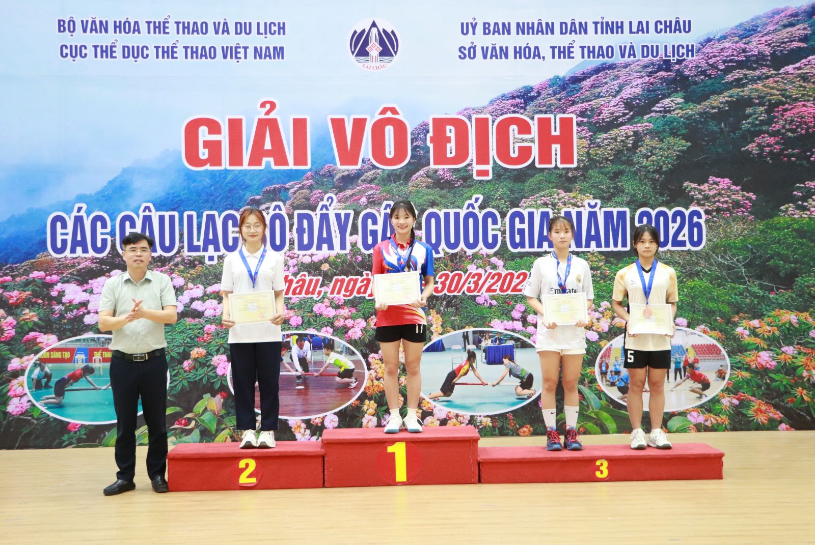 Sáng nay (30/3), tại Nhà thi đấu thể dục, thể thao - Liên đoàn Lao động tỉnh Lai Châu, Cục Thể dục thể thao Việt Nam (Bộ Văn hóa, Thể thao và Du lịch) phối hợp với Sở Văn hóa, Thể thao và Du lịch tỉnh Lai Châu tổ chức Bế mạc Giải Vô địch các Câu lạc bộ Đẩy gậy quốc gia năm 2026.