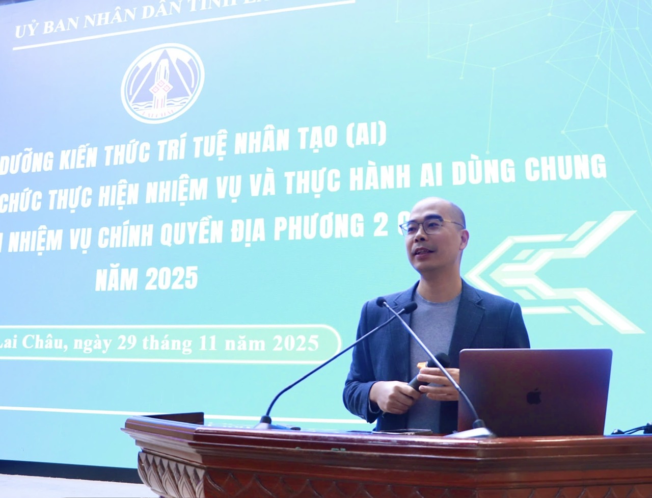 Sáng nay (29/11), các Sở: Khoa học và Công nghệ, Tài chính, Nội vụ, Văn hóa, Thể thao và Du lịch và Văn phòng UBND tỉnh tổ chức bồi dưỡng kiến thức trí tuệ nhân tạo (AI) cho công chức, viên chức thực hiện nhiệm vụ và thực hành AI dùng chung thực hiện nhiệm vụ chính quyền địa phương 2 cấp.