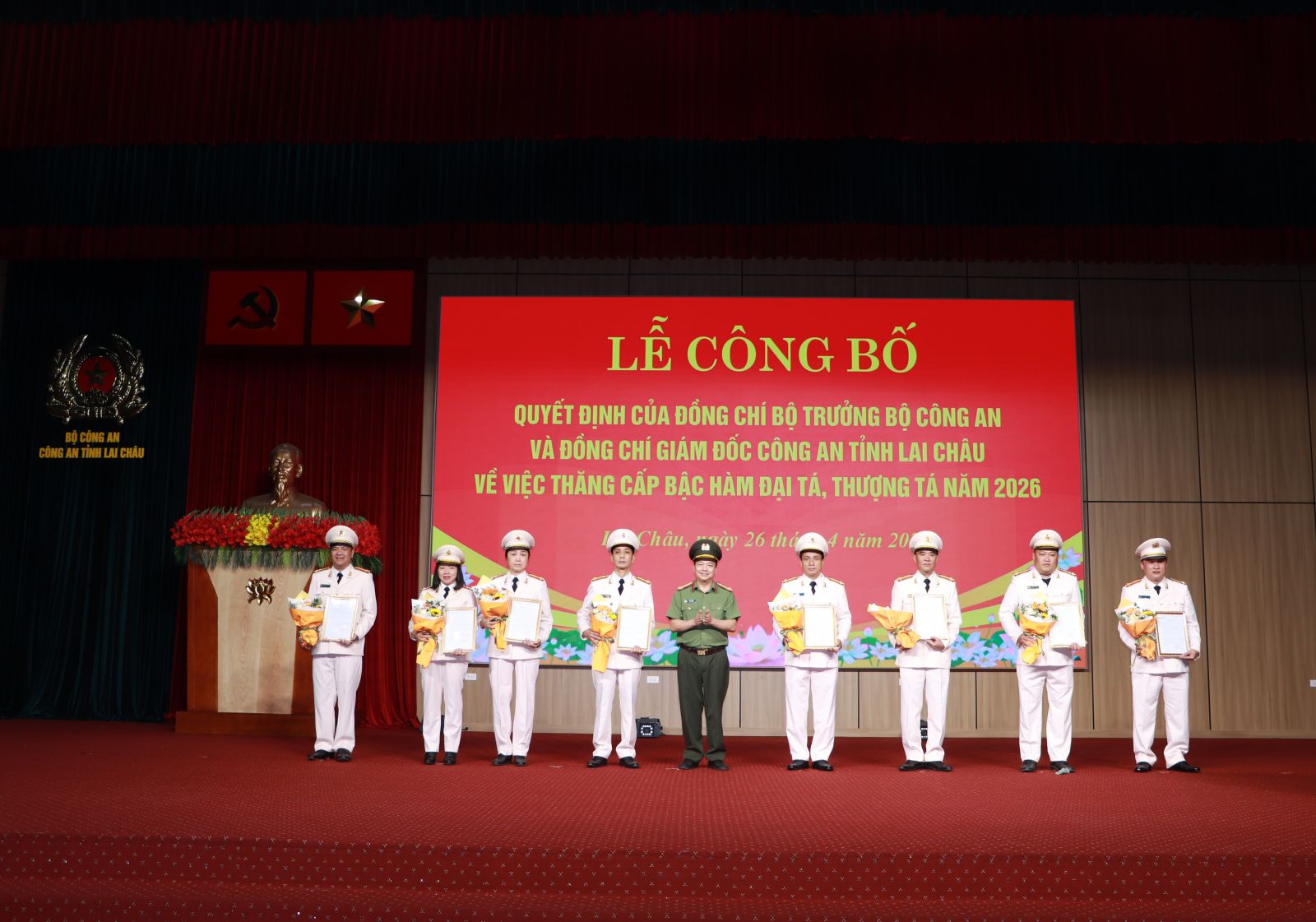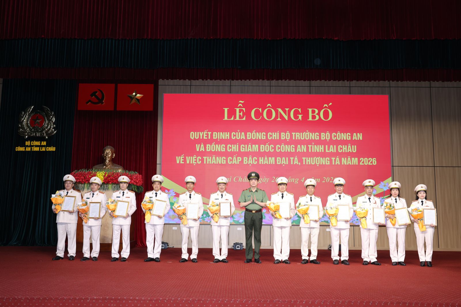 Công an tỉnh: Lễ công bố quyết định của đồng chí Bộ trưởng Bộ Công an và đồng chí Giám đốc Công an tỉnh Lai Châu về việc thăng cấp bậc hàm Đại tá, Thượng tá năm 2026