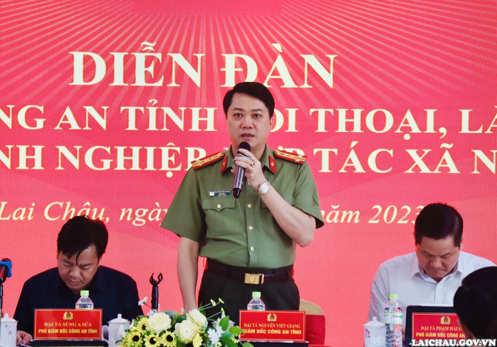 Phát biểu khai mạc Diễn đàn, Đại tá Nguyễn Viết Giang - Ủy viên Ban Thường vụ Tỉnh ủy, Giám đốc Công an tỉnh đã thông tin về tình hình an ninh chính trị và trật tự an toàn xã hội trên địa bàn tỉnh trong thời gian qua. Đồng thời nhấn mạnh về công tác xây dựng Đảng và xây dựng lực lượng Công an Nhân dân; tăng cường lực lượng Công an công tác tại cơ sở, bố trí Công an chính quy thực hiện nhiệm vụ tại Công an cấp xã… Từ hiệu quả của công tác bảo đảm an ninh trật tự trên địa bàn thời gian qua cho thấy, triển khai thực hiện các chủ trương của Trung ương, của Bộ Công an, của tỉnh, cùng với sự đồng tình, ủng hộ, giúp đỡ rất lớn của doanh nghiệp, hợp tác xã và Nhân dân, tình hình an ninh trật tự ở các địa bàn có sự chuyển biến rõ rệt, tích cực qua từng năm, mọi thông tin, tình hình được nắm chắc và giải quyết, xử lý ngay từ cơ sở.
