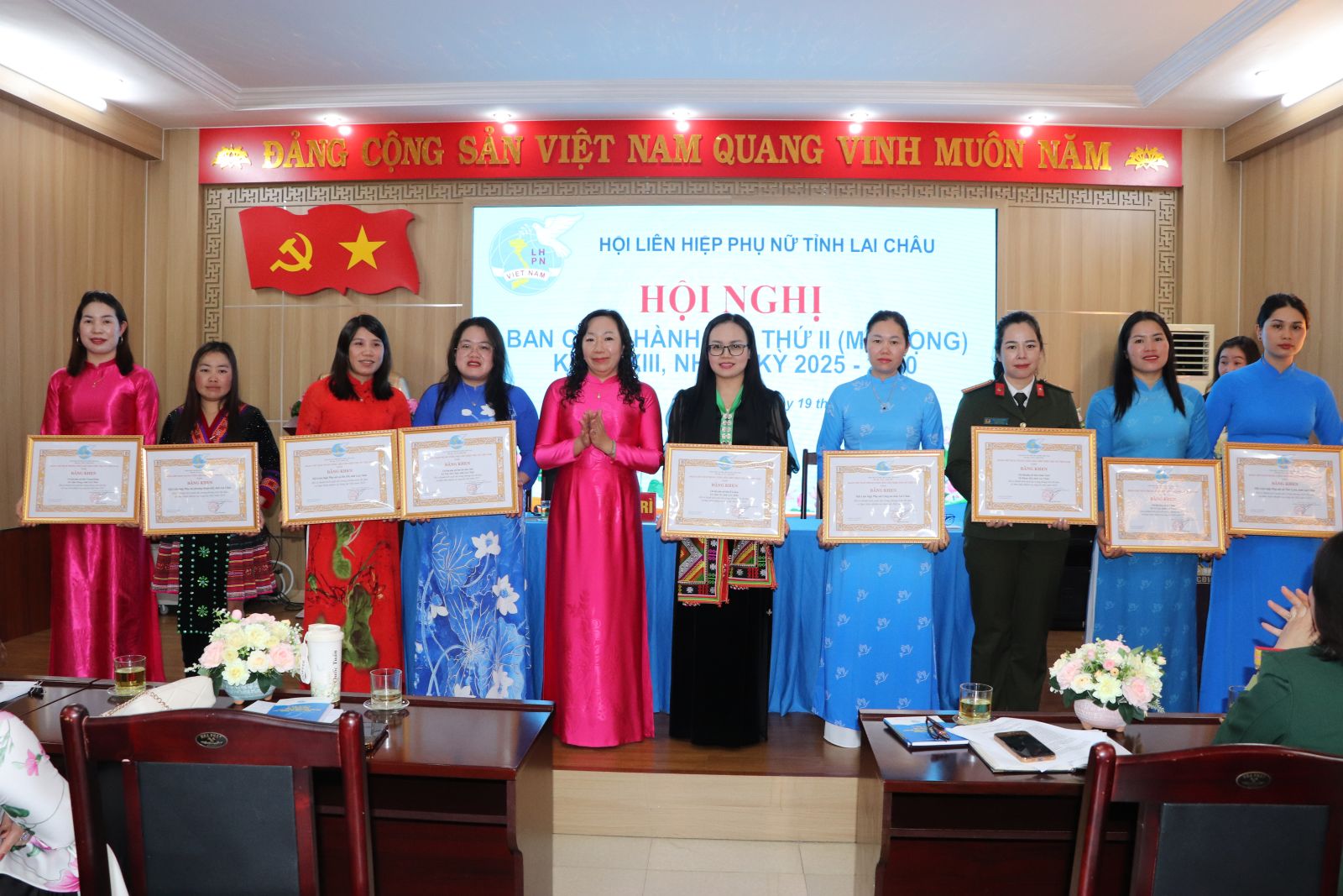 Năm 2025, Hội Liên hiệp Phụ nữ các cấp đã bám sát chỉ đạo của tỉnh, Đoàn Chủ tịch Trung ương Hội Liên hiệp Phụ nữ Việt Nam triển khai các hoạt động, công tác Hội, các phong trào thi đua gắn với nhiệm vụ chính trị tại địa phương; hoạt động Hội có nhiều đổi mới, phù hợp với tình hình cụ thể của từng địa phương, đơn vị; kịp thời củng cố, kiện toàn tổ chức hội khi triển khai mô hình chính quyền địa phương hai cấp; tổ chức thành công Đại hội Đại biểu Phụ nữ tỉnh Lai Châu lần thứ XIII, nhiệm kỳ 2025 - 2030. Trong năm 2025, Hội Liên hiệp Phụ nữ các cấp đã phối hợp trồng, chăm sóc, bảo vệ các con đường hoa, dọn vệ sinh môi trường, sử dụng các sản phẩm thân thiện với môi trường... được 582 buổi với 34.678 người tham gia, làm 110 viên gạch sinh thái từ vỏ chai nhựa và túi nilon.