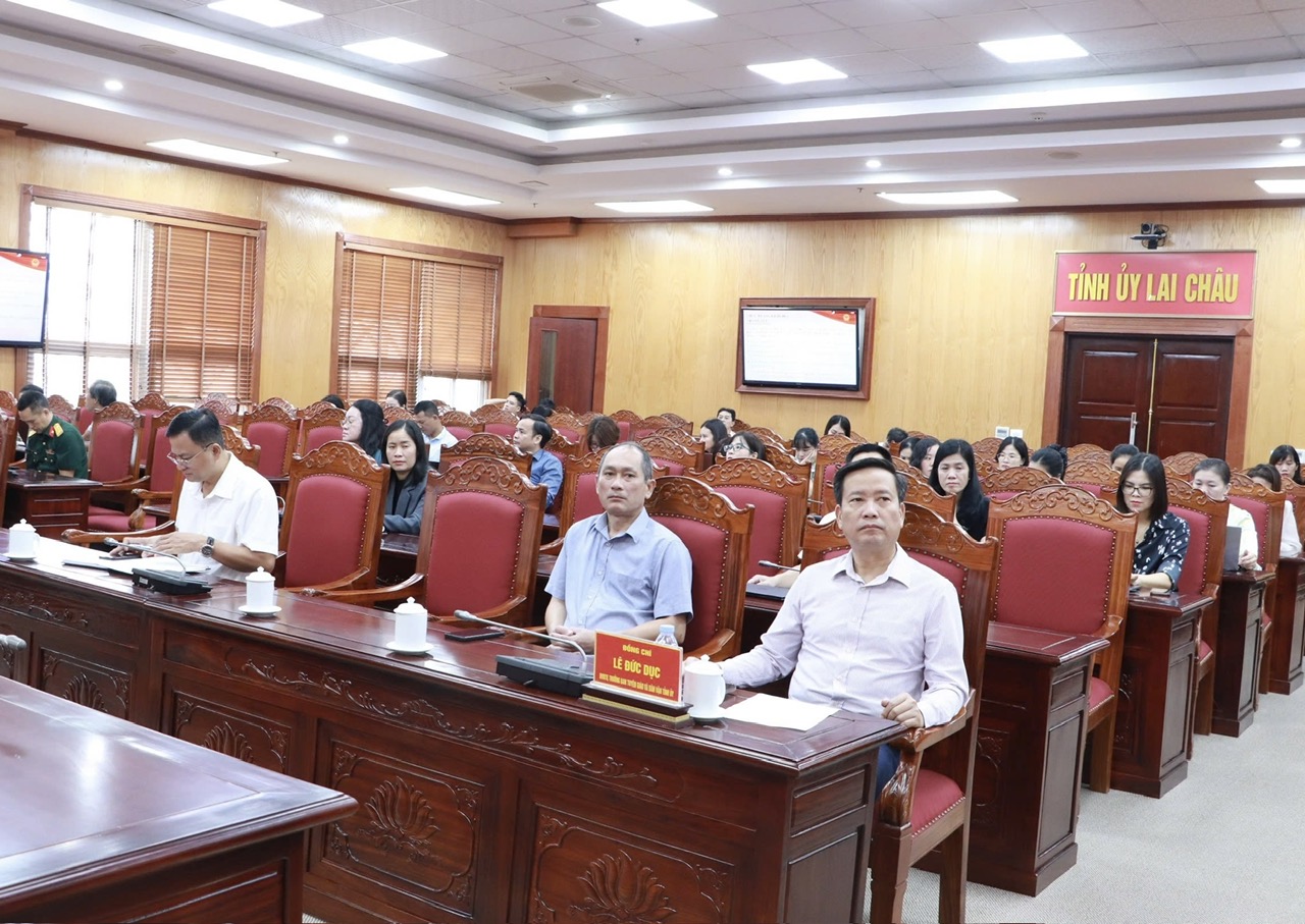 Dự Hội nghị tại điểm cầu tỉnh Lai Châu có đồng chí Lê Đức Dục - Ủy viên Ban Thường vụ Tỉnh ủy, Trưởng Ban Tuyên giáo và Dân vận Tỉnh ủy; các đồng chí Báo cáo viên Trung ương của tỉnh, Báo cáo viên cấp tỉnh; đại diện lãnh đạo Ủy ban Mặt trận Tổ quốc Việt Nam tỉnh; đại diện lãnh đạo và cán bộ chuyên môn: Ban Tuyên giáo và Dân vận Đảng ủy các cơ quan Đảng tỉnh, Đảng ủy UBND tỉnh; Phòng Chính trị Công an tỉnh; Phòng Chính trị Bộ Chỉ huy Quân sự tỉnh; Ban Tuyên giáo, công tác xã hội Ủy ban Mặt trận Tổ quốc Việt Nam tỉnh; các khoa Trường Chính trị tỉnh; đại diện lãnh đạo các phòng chuyên môn Sở Giáo dục và Đào tạo; lãnh đạo và chuyên viên Ban Tuyên giáo và Dân vận Tỉnh ủy.