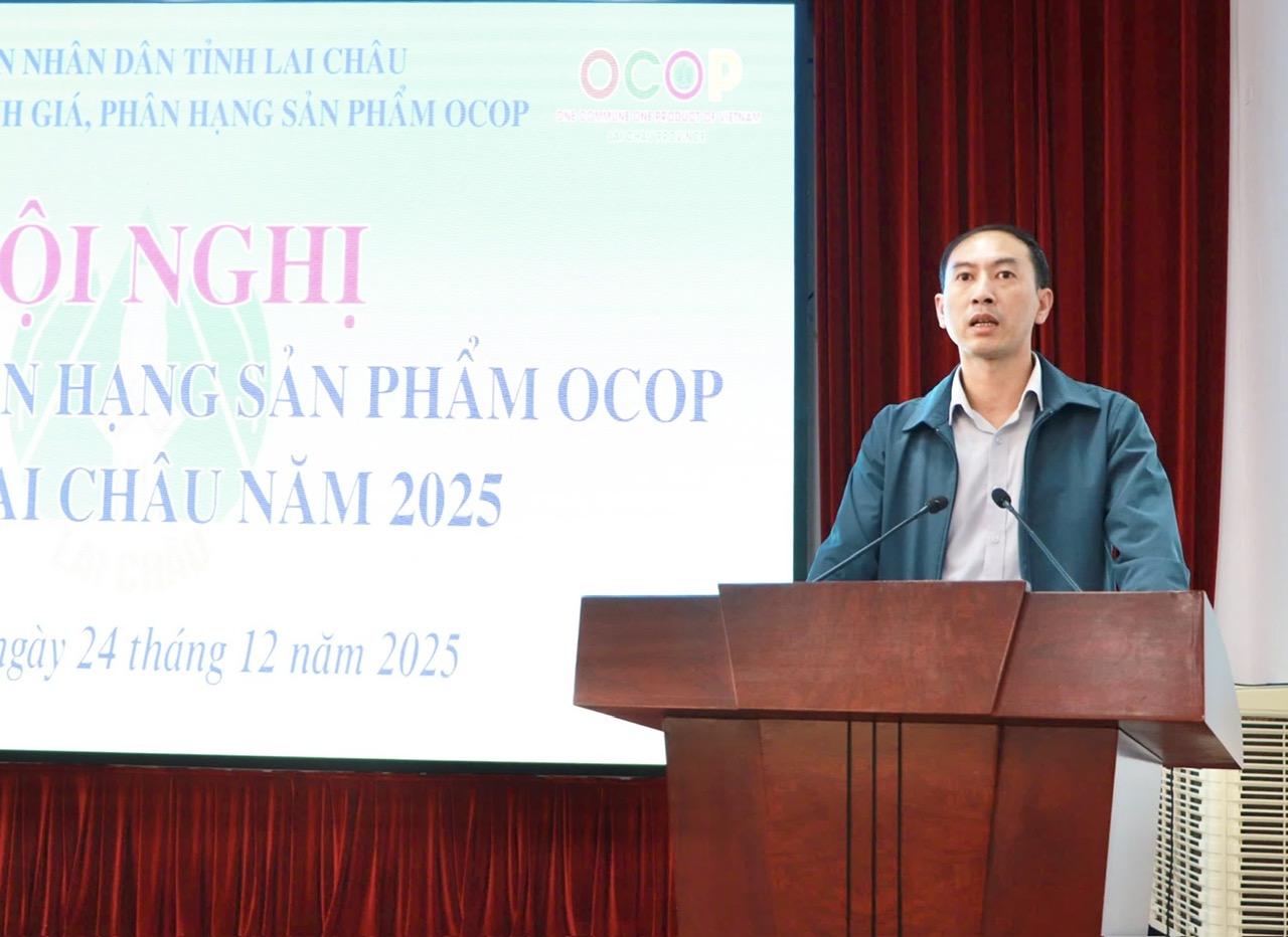 Chiều nay (24/12), Hội đồng đánh giá, phân hạng sản phẩm OCOP tỉnh Lai Châu tổ chức Hội nghị đánh giá, phân hạng sản phẩm OCOP năm 2025 đối với 17 sản phẩm. Đồng chí Nguyễn Thành Đồng - Phó Giám đốc Sở Nông nghiệp và Môi trường, Phó Chủ tịch Hội đồng đánh giá, phân hạng sản phẩm OCOP tỉnh Lai Châu chủ trì Hội nghị.