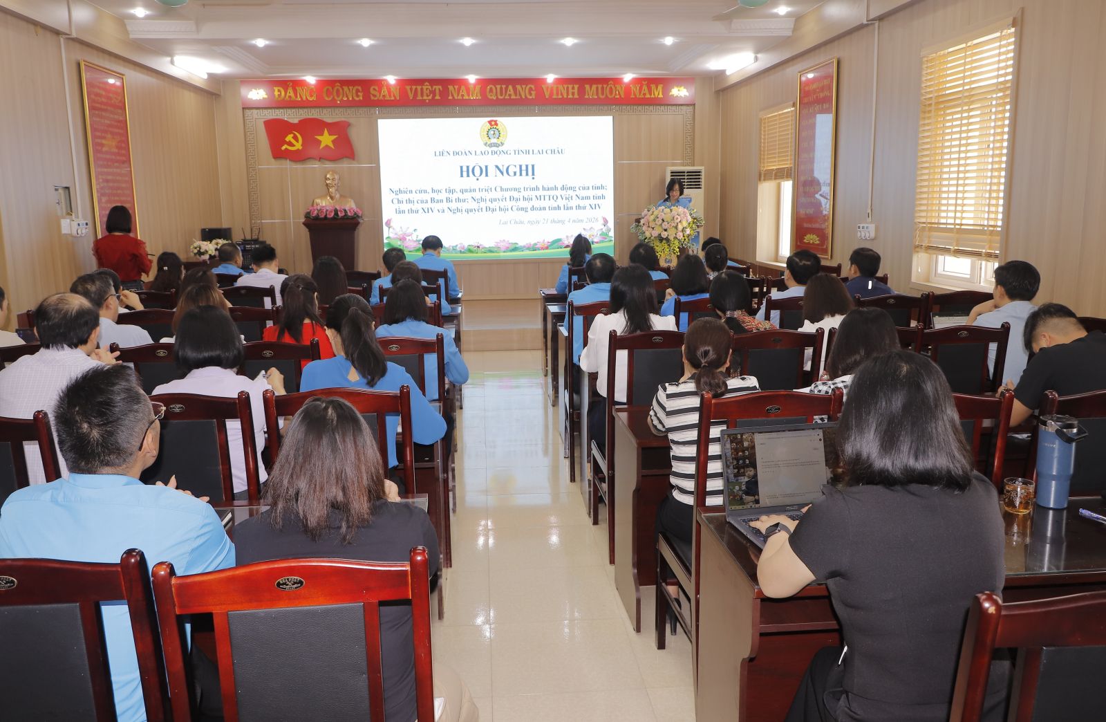 Sáng nay (21/4), Liên đoàn Lao động tỉnh Lai Châu đã tổ chức Hội nghị nghiên cứu, học tập, quán triệt Chương trình hành động thực hiện Nghị quyết của tỉnh, Chỉ thị của Ban Bí thư; Nghị quyết Đại hội Mặt trận Tổ quốc Việt Nam tỉnh lần thứ XIV và Nghị quyết Đại hội Công đoàn tỉnh lần thứ XIV.