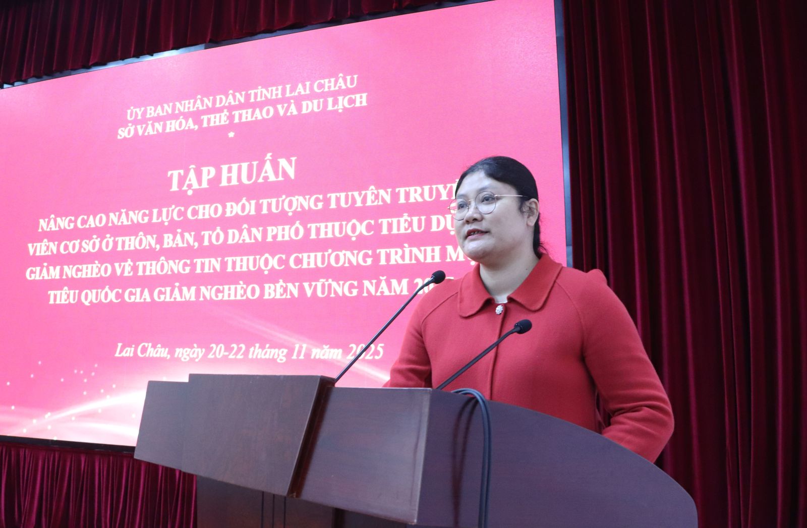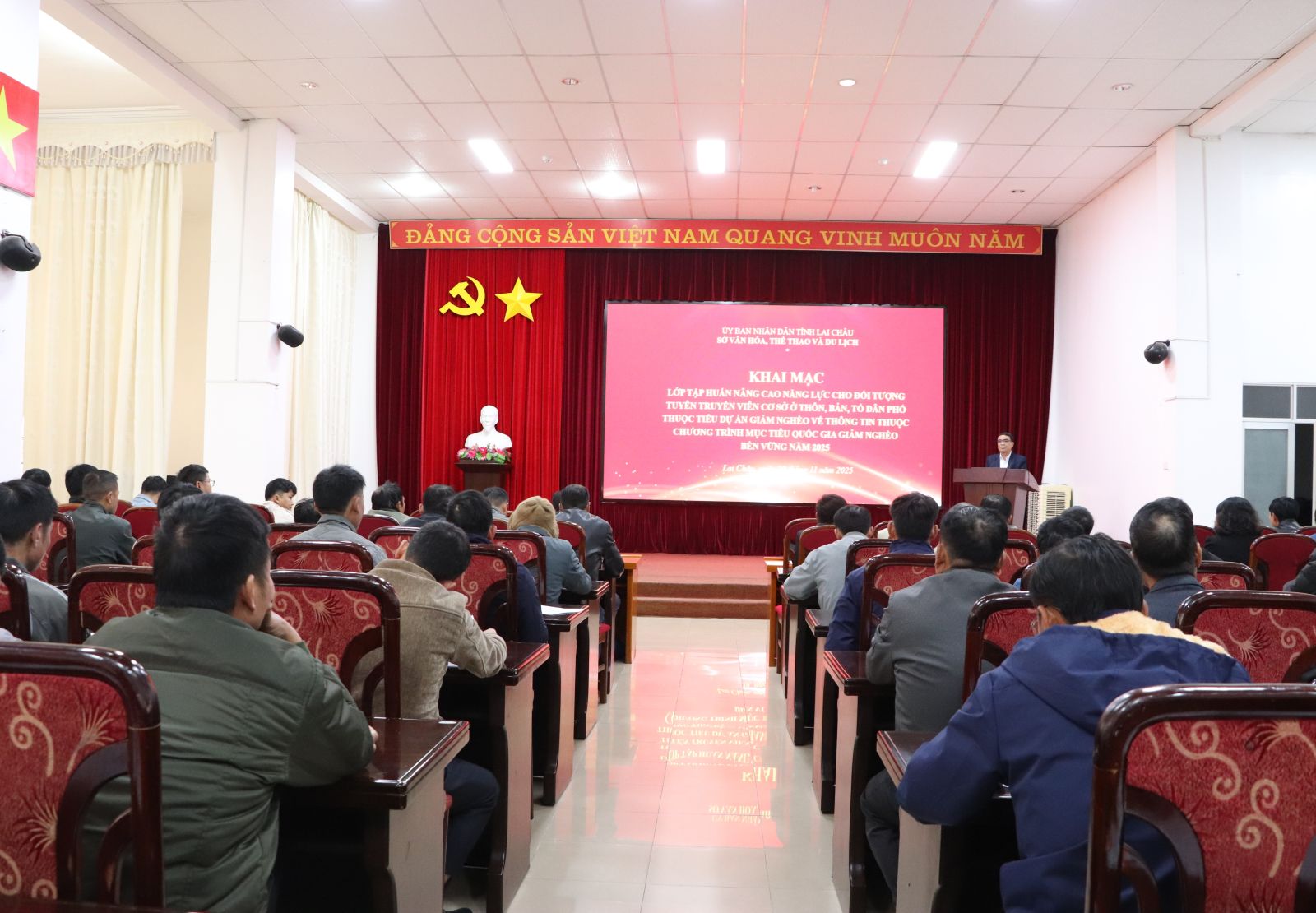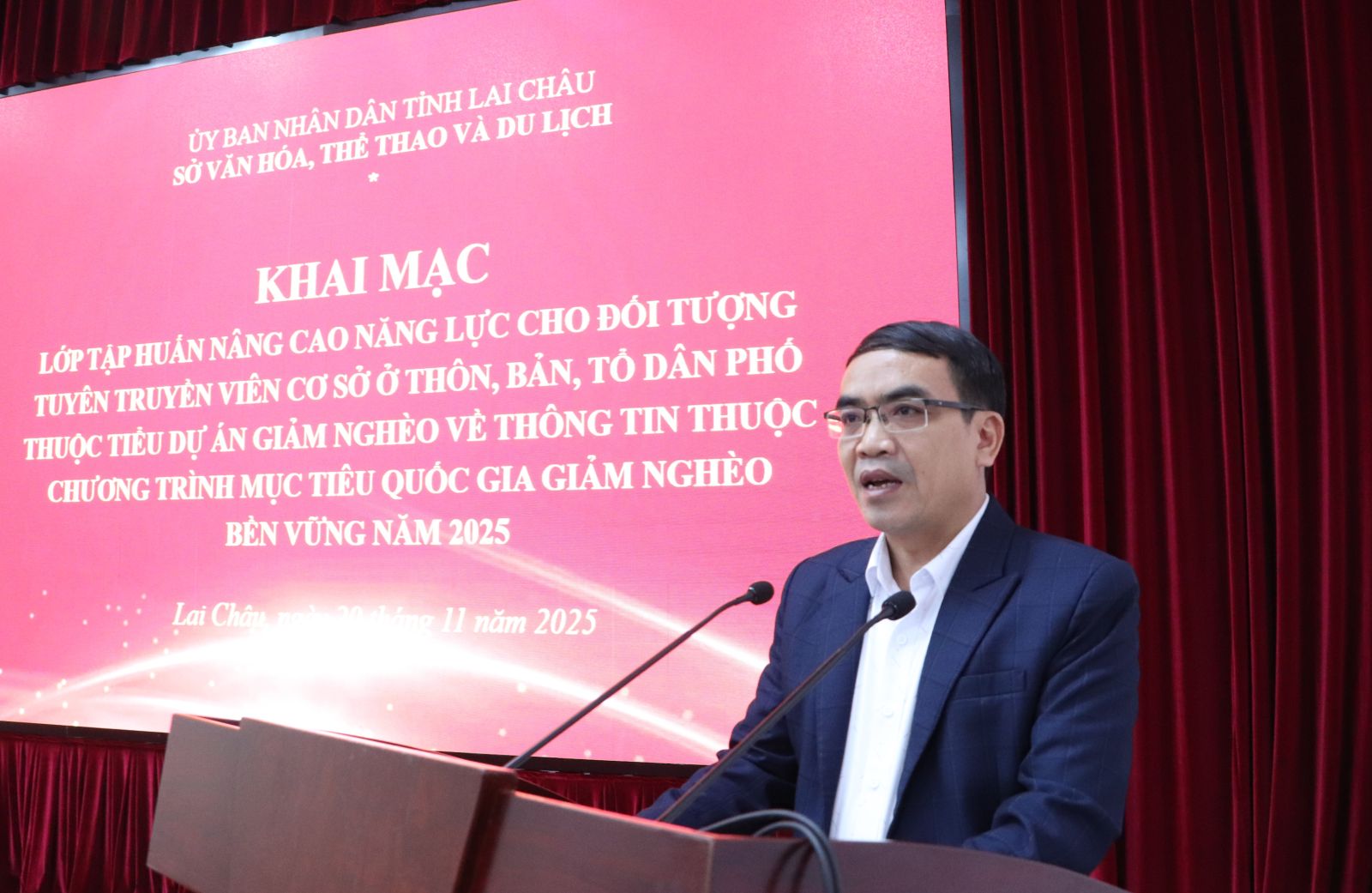 Sáng nay (20/11), Sở Văn hóa, Thể thao và Du lịch tổ chức khai mạc Lớp tập huấn nâng cao năng lực cho đối tượng tuyên truyền viên cơ sở ở thôn, bản, tổ dân phố thuộc Tiểu dự án Giảm nghèo về thông tin thuộc Chương trình mục tiêu quốc gia Giảm nghèo bền vững năm 2025. Đồng chí Lưu Hồng Phương - Phó Giám đốc Sở Văn hoá, Thể thao và Du lịch dự và phát biểu khai mạc Lớp tập huấn.