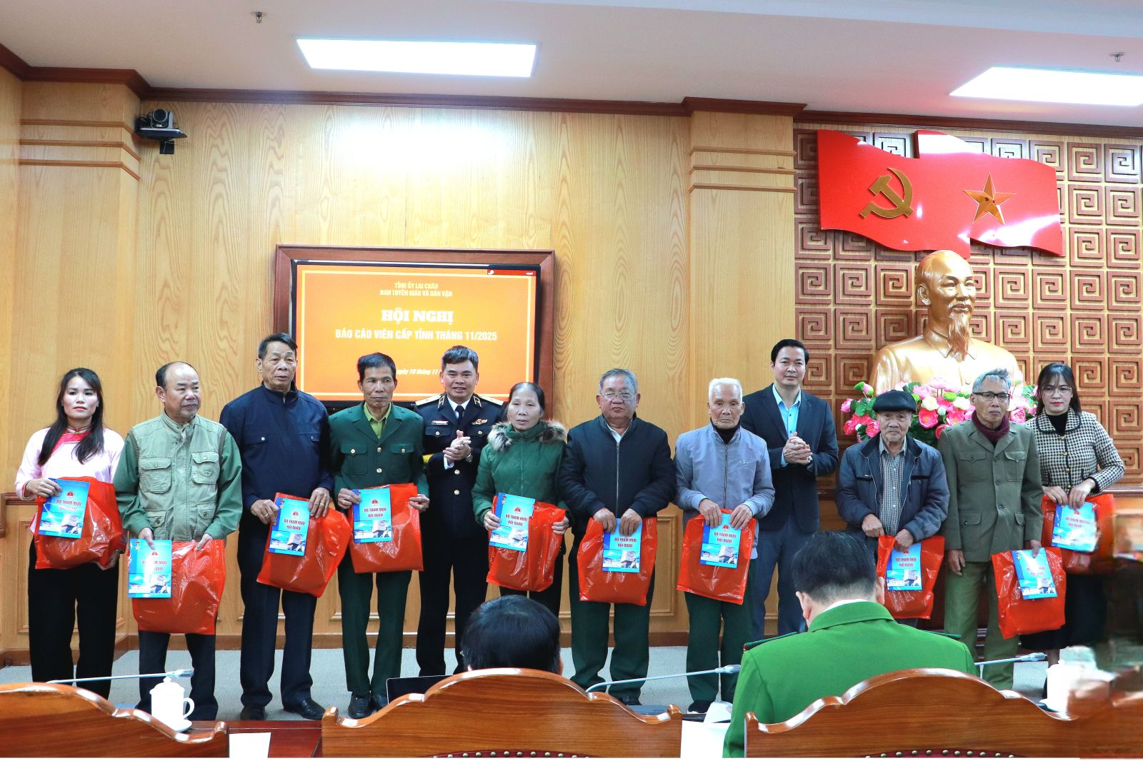 Về phía tỉnh Lai Châu có các đồng chí: Đào Thị Thanh Nhàn - Phó Trưởng Ban Thường trực Ban Tuyên giáo và Dân vận Tỉnh ủy; Nguyễn Đình Toán - Phó Trưởng Ban Tuyên giáo và Dân vận Tỉnh ủy; các đồng chí báo cáo viên Trung ương của tỉnh, Báo cáo viên cấp tỉnh; lãnh đạo và chuyên viên Ban Tuyên giáo và Dân vận Tỉnh uỷ; đại diện lãnh đạo Phòng Chính trị, Ban Tuyên huấn Bộ Chỉ huy Quân sự tỉnh, Ban Chỉ huy Bộ đội Biên phòng tỉnh; đại diện lãnh đạo Phòng Công tác chính trị, Công an tỉnh; lãnh đạo các khoa, phòng Trường Chính trị tỉnh; lãnh đạo và chuyên viên phụ trách tuyên truyền, Ban Tuyên giáo và Dân vận Đảng ủy các cơ quan Đảng tỉnh, Đảng ủy UBND tỉnh; Ban Tuyên giáo và Công tác xã hội, Ủy ban MTTQ Việt Nam tỉnh; Ban xây dựng Đảng đảng ủy các xã, phường... dự Hội nghị.