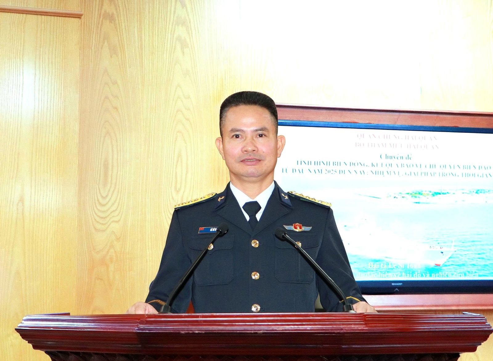 Theo đó, Đại tá Lê Sĩ Toản - Chính ủy, Đoàn Đo đạc, Biên vẽ hải đồ và Nghiên cứu biển, Bộ Tham mưu Quân chủng Hải quân thông tin Chuyên đề về biển, đảo Việt Nam trong đó nêu bật vị trí, vai trò và tầm quan trọng đặc biệt của biển, đảo Việt Nam đối với sự nghiệp xây dựng và bảo vệ Tổ quốc trong tình hình mới; các chủ trương, đường lối của Đảng, chính sách, pháp luật của Nhà nước về biển, đảo, trọng tâm là tuyên truyền, quán triệt, triển khai thực hiện những nội dung liên quan đến biển, đảo Việt Nam được nêu trong Nghị quyết Đại hội XIII của Đảng, Nghị quyết số 36-NQ/TW, ngày 22/10/2018 của Ban Chấp hành Trung ương Đảng khóa XII về “Chiến lược phát triển bền vững kinh tế biển Việt Nam đến năm 2030, tầm nhìn đến năm 2045”…