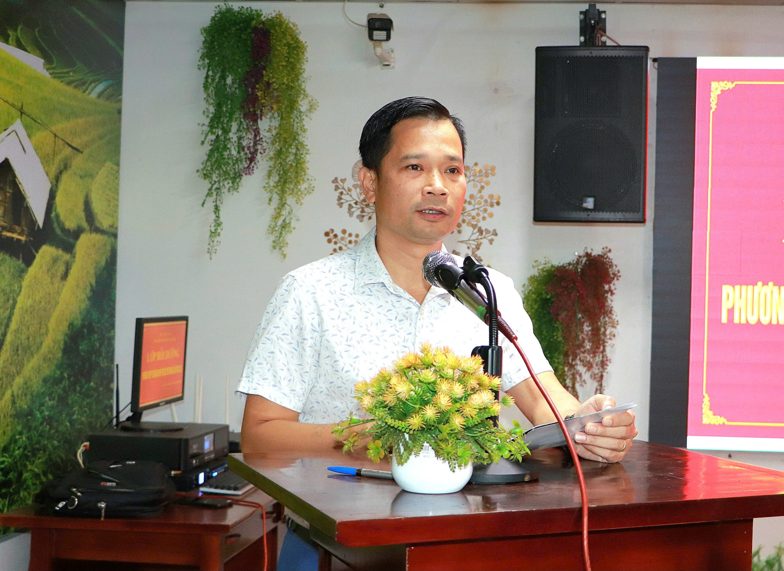 Lớp bồi dưỡng được Sở Văn hóa, Thể thao và Du lịch tổ chức sáng nay (20/10). Đồng chí Trần Văn Công - Phó Giám đốc Sở Văn hóa, Thể thao và Du lịch tỉnh dự và phát biểu khai mạc Lớp bồi dưỡng.