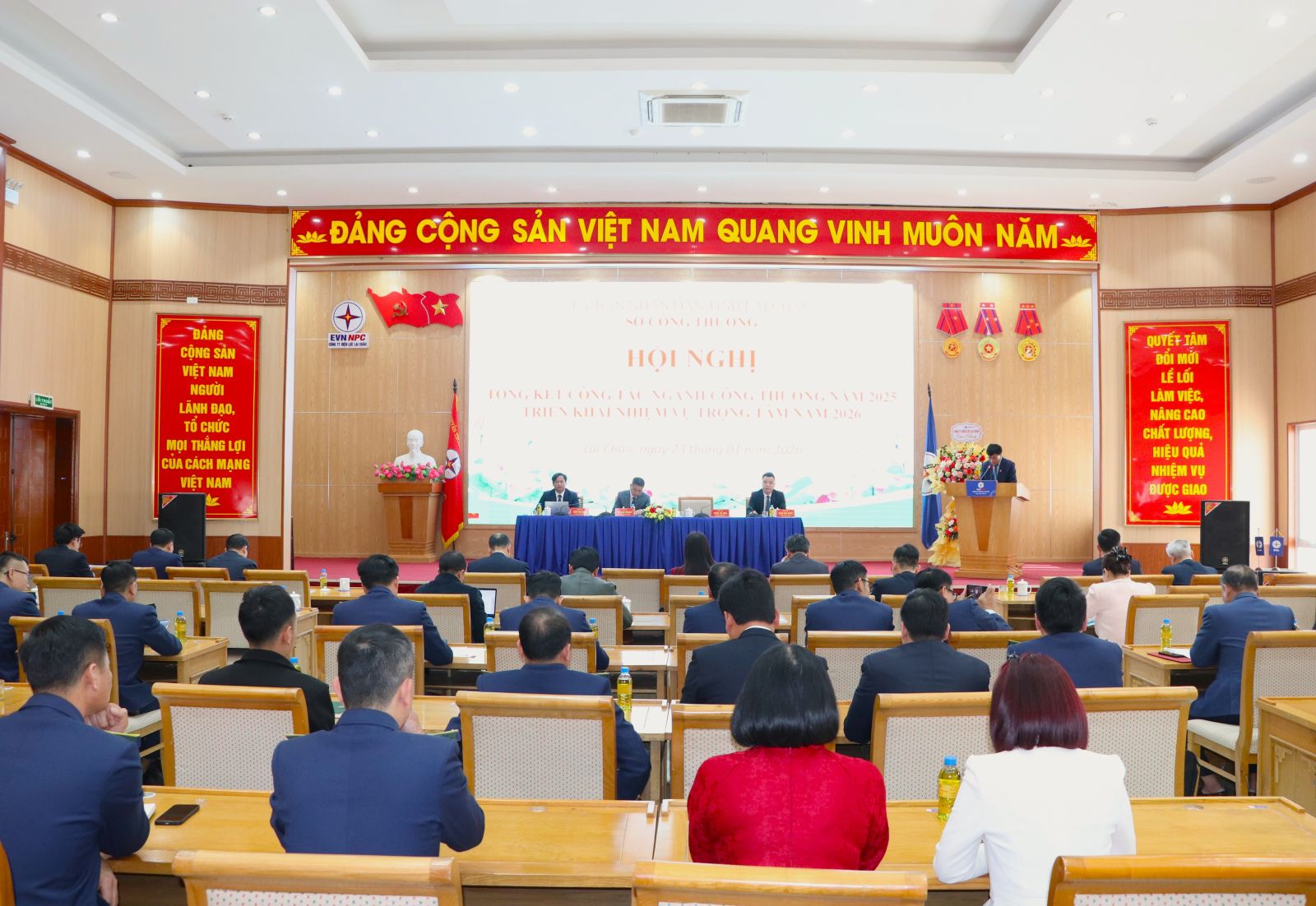 Theo Báo cáo tại Hội nghị, năm 2025 dưới sự lãnh đạo của Tỉnh ủy, HĐND, UBND tỉnh và Bộ Công Thương; sự phối hợp của ngành Công thương với các cấp, các ngành; cùng sự nỗ lực, đoàn kết và quyết tâm cao độ của toàn thể cán bộ, doanh nghiệp trong ngành, ngành Công Thương đã hoàn thành vượt mức các chỉ tiêu được giao, đóng góp phần lớn vào tăng trưởng GRDP của tỉnh đạt 8% năm 2025. Giá trị sản xuất công nghiệp ước đạt 9.503 tỷ đồng, vượt 4,9% kế hoạch và tăng trưởng 10,6% so với năm 2024; công nghiệp điện giữ vai trò then chốt với giá trị đạt 8.043,6 tỷ đồng, tăng 11,4% so với cùng kỳ. Đáng chú ý, năm 2025 có thêm 9 dự án thủy điện hoàn thành, nâng tổng số dự án vận hành lên 71 dự án với tổng công suất 3.230,2 MW. Tỷ lệ số hộ được sử dụng điện lưới quốc gia đạt 97,1% (hoàn thành 100% kế hoạch).