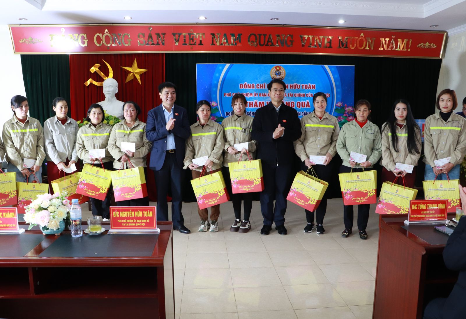 Nhân dịp Tết đến, Xuân về, đồng chí Nguyễn Hữu Toàn đã chúc các đơn vị luôn hoàn thành xuất sắc kế hoạch sản xuất kinh doanh, xây dựng môi trường làm việc an toàn, hiệu quả; trong năm 2026 tiếp tục hoàn thành và vượt các chỉ tiêu đề ra, ngày càng chăm lo tốt hơn đời sống cho đoàn viên, công nhân lao động trong đơn vị. Đồng thời trao 50 suất quà (1,3 triệu đồng/suất) cho đoàn viên, công nhân lao động có hoàn cảnh khó khăn thuộc Công ty Cổ phần Môi trường đô thị Lai Châu, Công ty Cổ phần nước sạch Lai Châu, Công ty Cổ phần Đầu tư và Phát triển Chè Tam Đường.