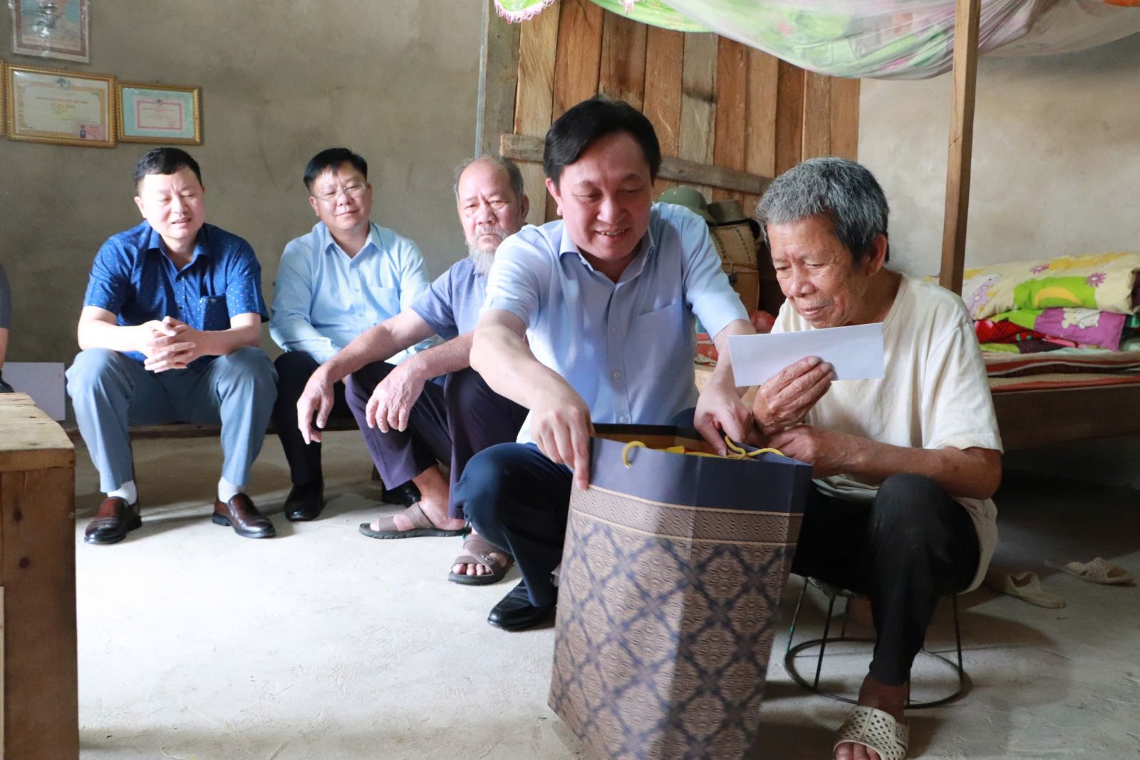 Tại các gia đình đến thăm, thay mặt Tỉnh ủy, HĐND, UBND, UBMTQ Việt Nam tỉnh, đồng chí Trưởng Ban Nội chính Tỉnh ủy Lò Văn Cương đã ân cần hỏi thăm tình hình sức khỏe, đời sống sinh hoạt và bày tỏ lòng biết ơn sâu sắc trước những hy sinh, cống hiến của thế hệ đi trước vì độc lập, tự do của Tổ quốc. Đồng chí khẳng định, Đảng, Nhà nước và Nhân dân luôn ghi nhớ, trân trọng những công lao đó; đồng thời mong muốn các gia đình tiếp tục phát huy truyền thống cách mạng, là tấm gương sáng cho con cháu noi theo; tích cực tuyên truyền, giáo dục con cháu chấp hành tốt chủ trương, đường lối của Đảng, chính sách, pháp luật của Nhà nước; hăng hái lao động sản xuất, phát triển kinh tế, xây dựng đời sống văn hóa tại địa phương…